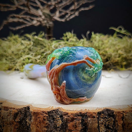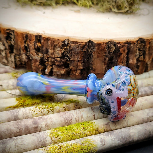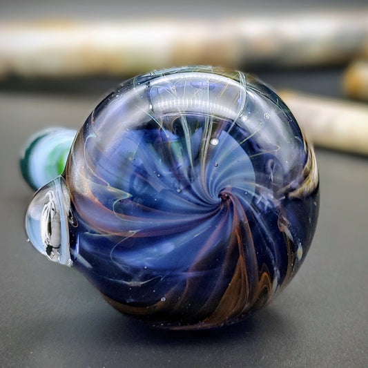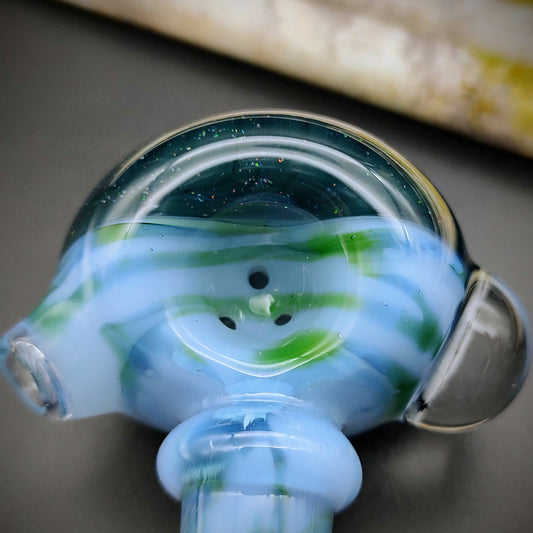 Pipa de mano con cara de dicro - Azul veteado/verde (lista para enviar)