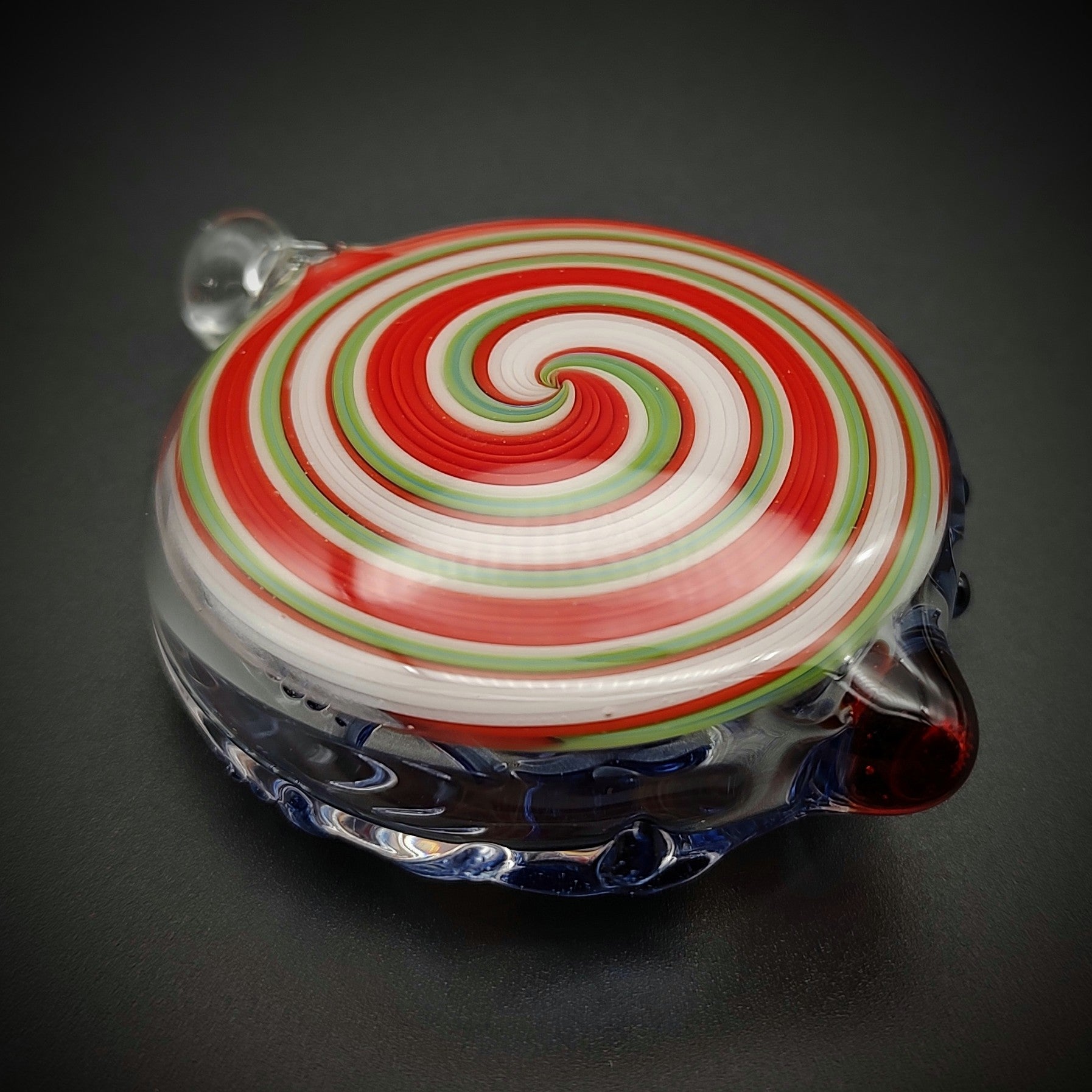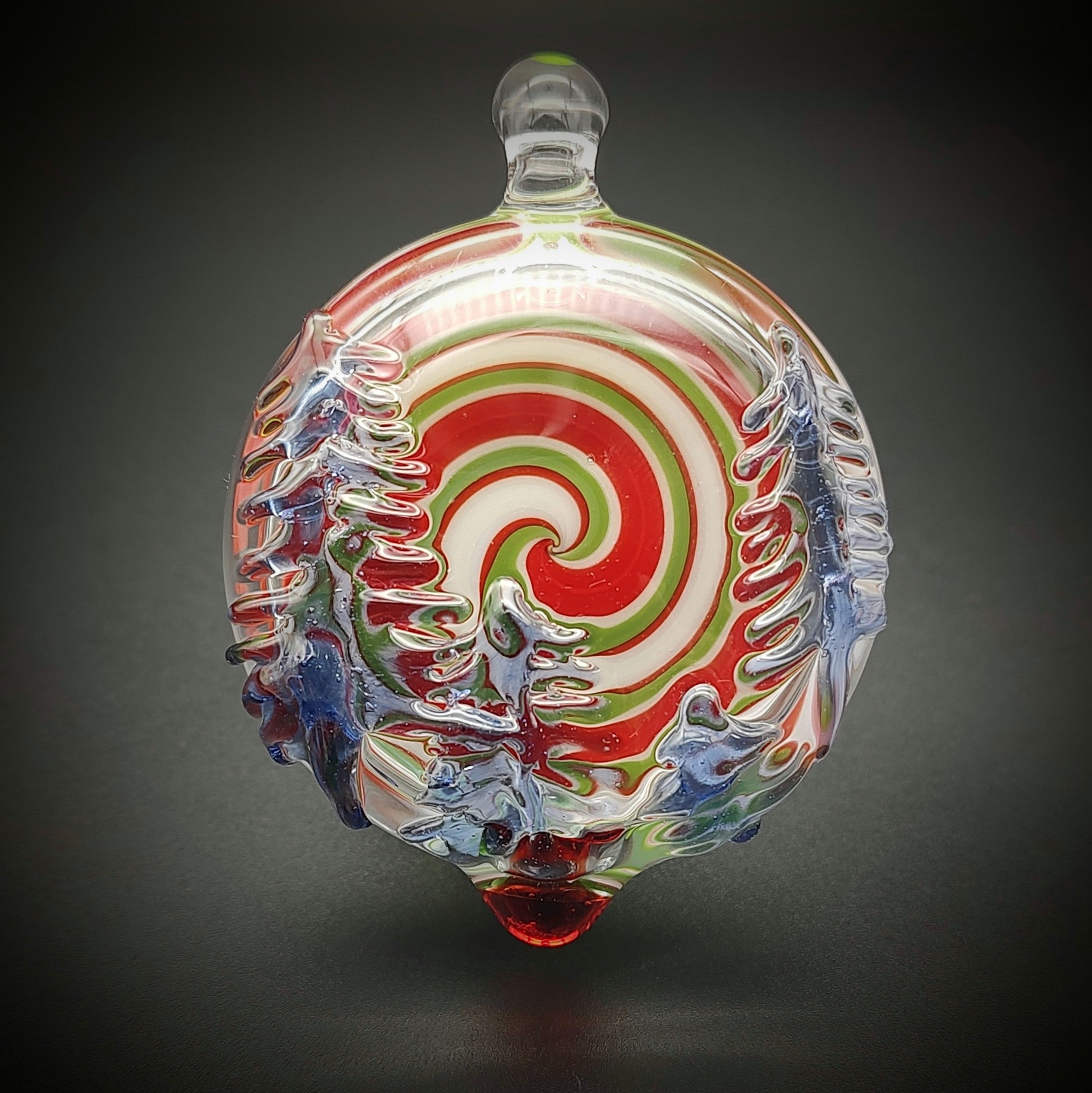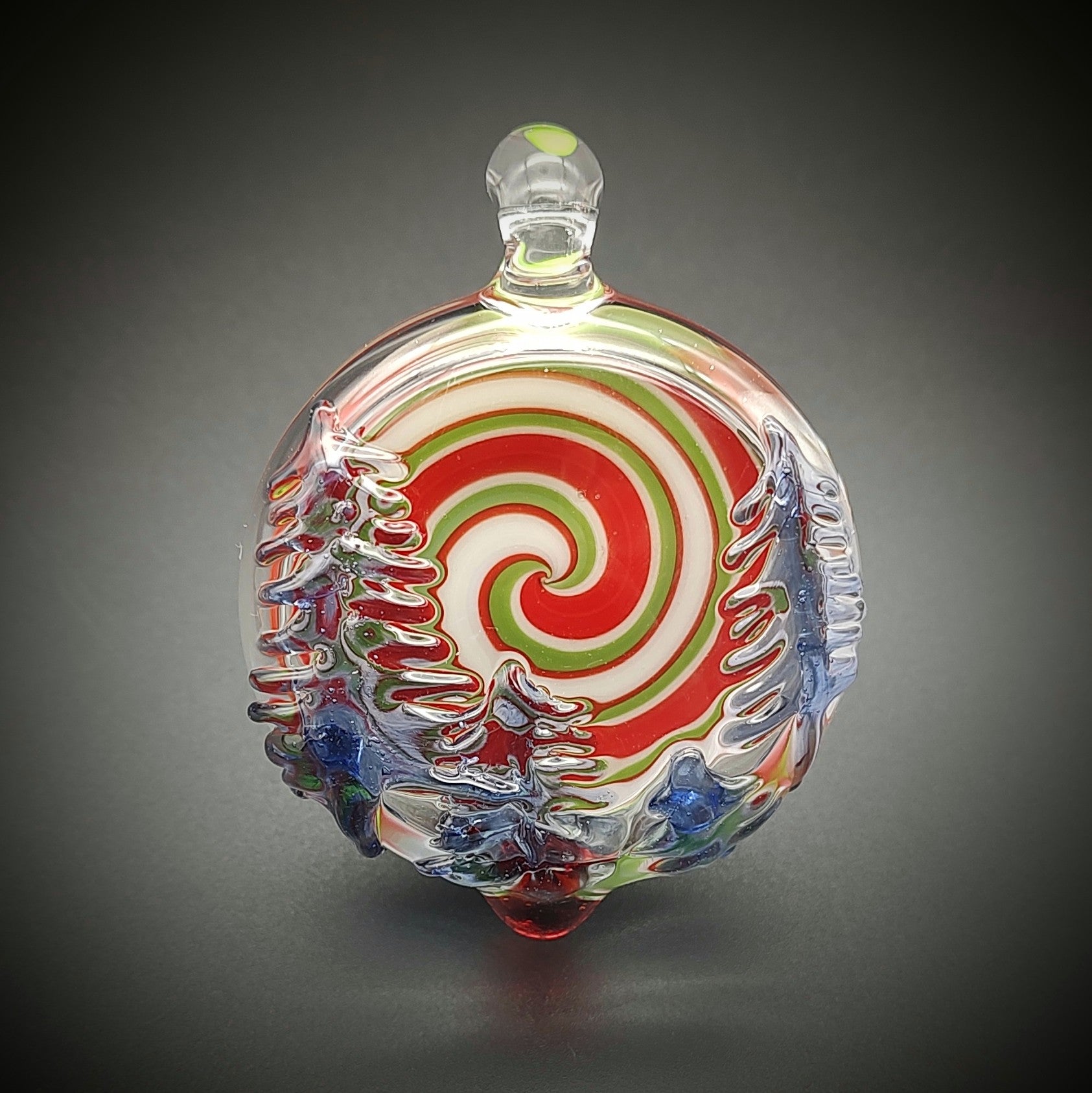 ¡Dale vida a tu árbol con este cautivador adorno navideño! Sus árboles azules transparentes caen maravillosamente en cascada sobre un tradicional fondo navideño en espiral rojo, verde y blanco, creando una sensación navideña cálida y festiva. ¡Mide aproximadamente 2" de diámetro y este adorno seguramente les traerá mucha alegría a usted y a su familia!