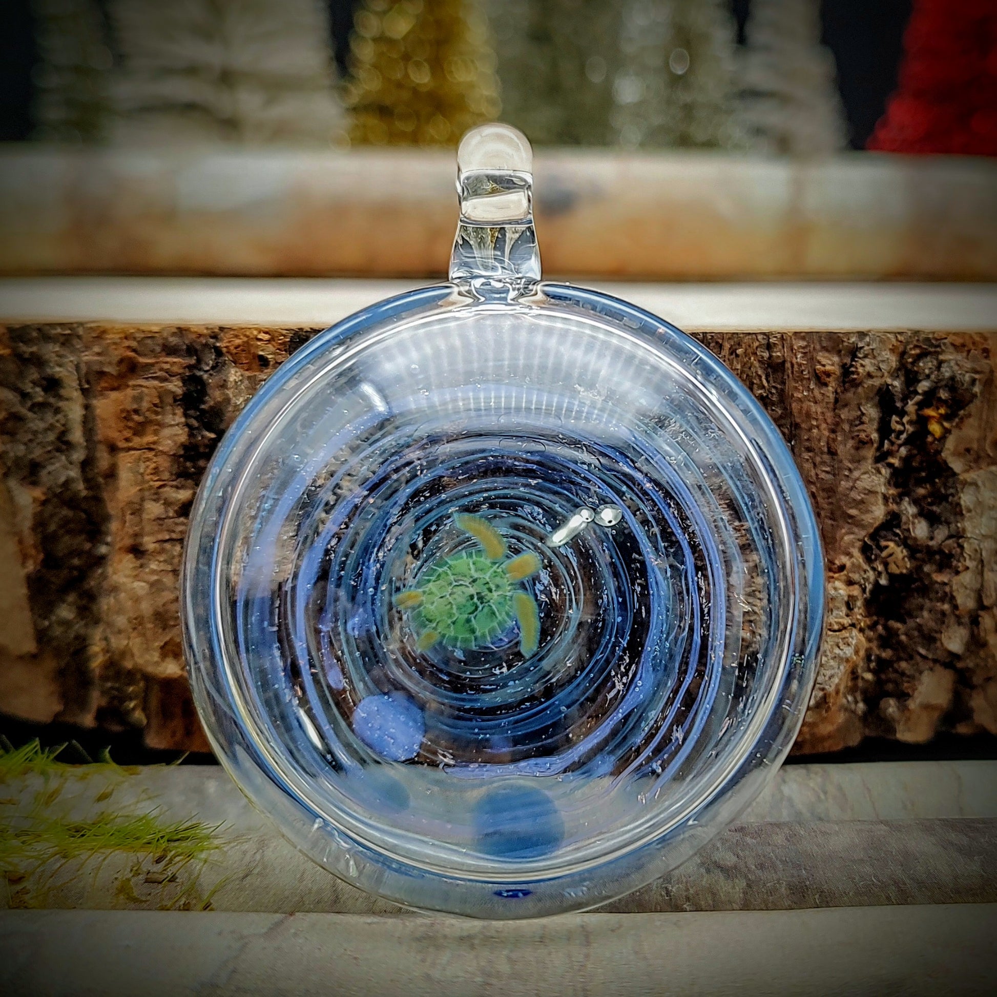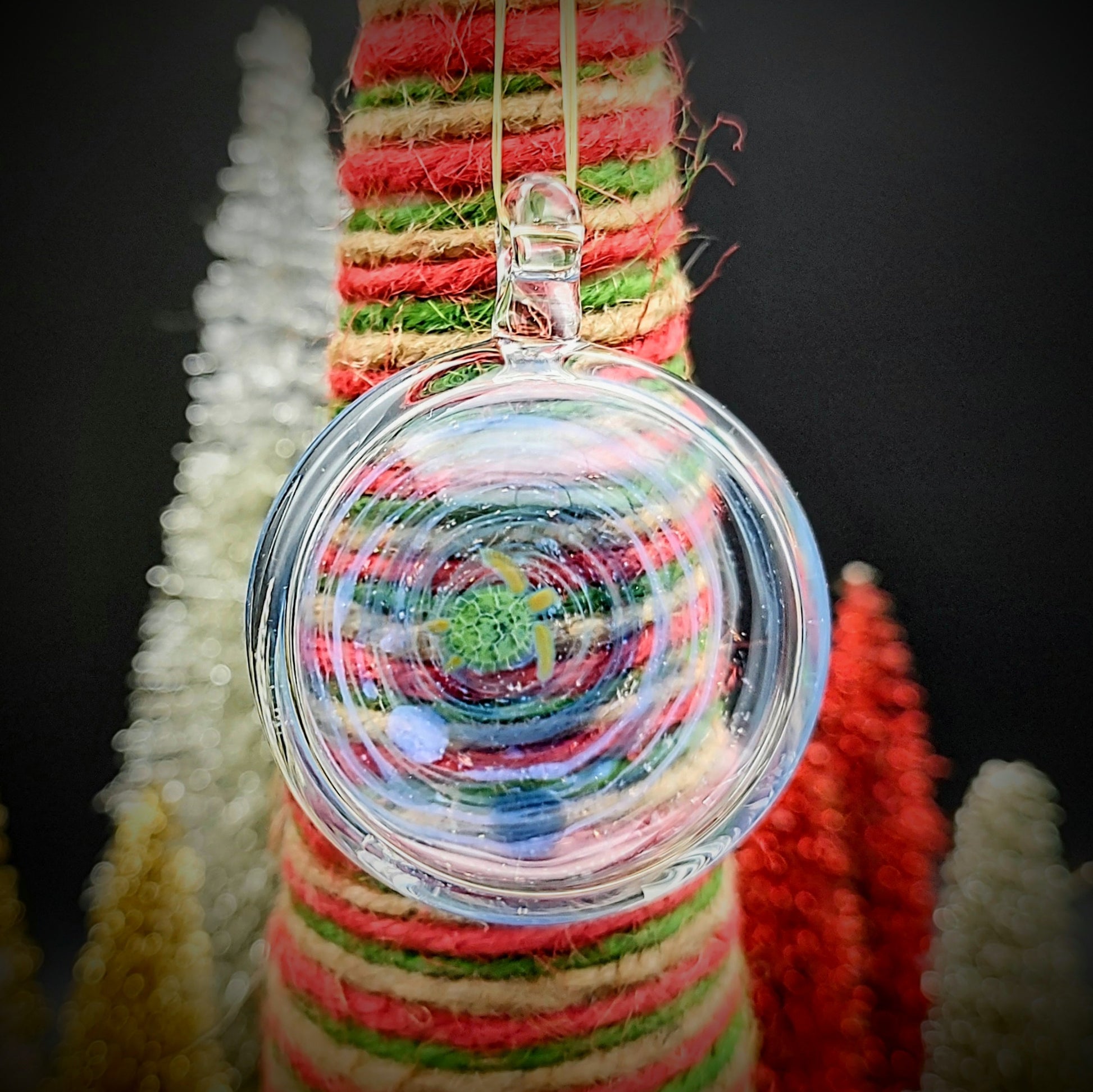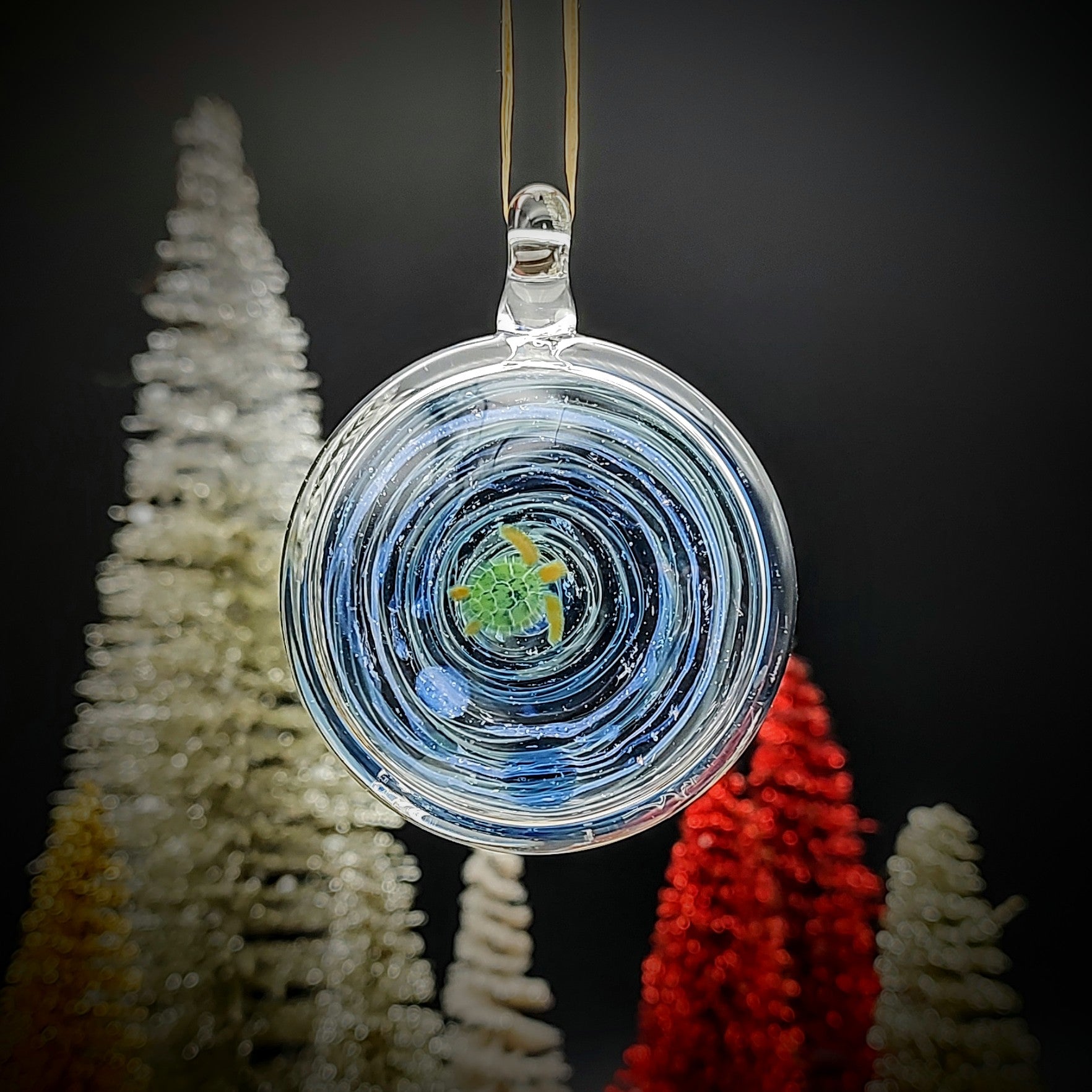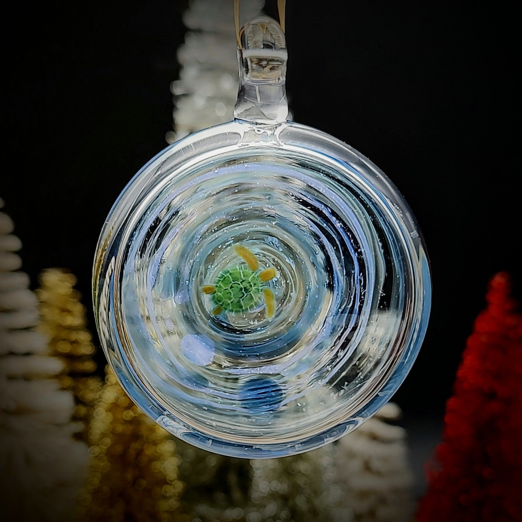 Este hermoso adorno navideño de 2,25" presenta un paisaje marino detallado de tortugas con colores vibrantes. Una excelente adición a cualquier decoración navideña, aportará un toque oceánico a su hogar esta temporada.