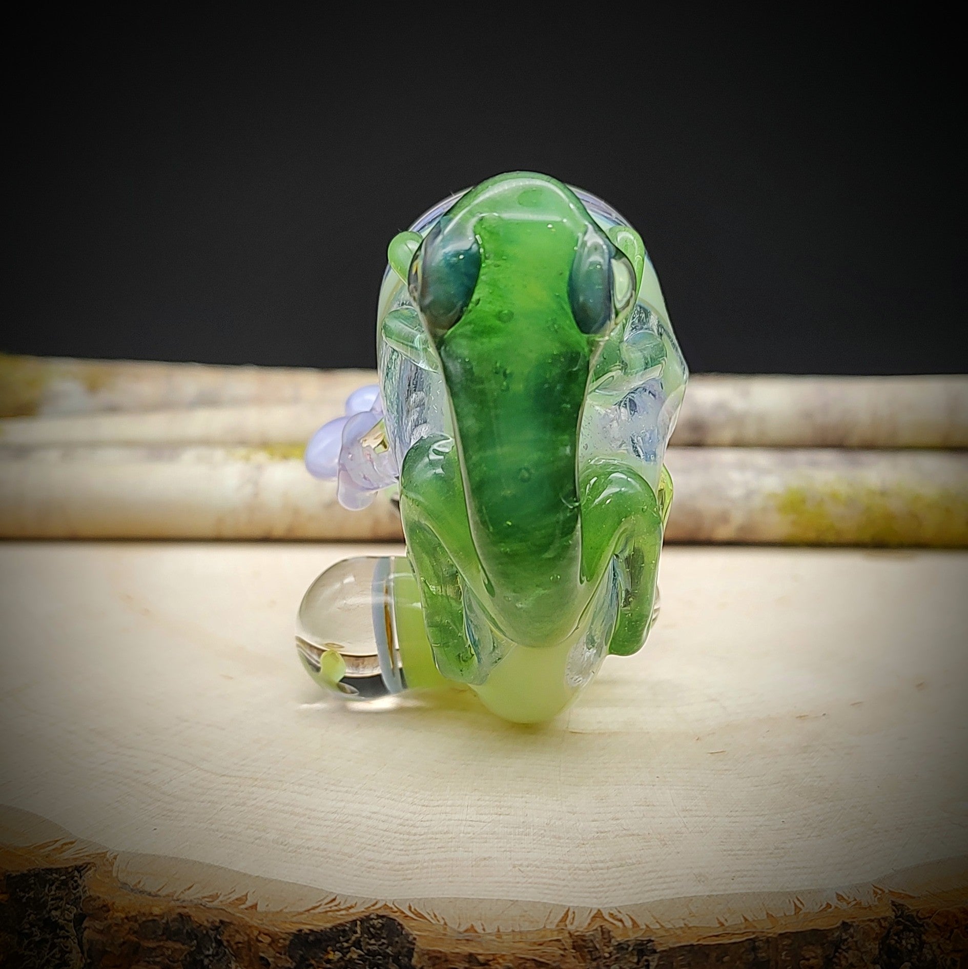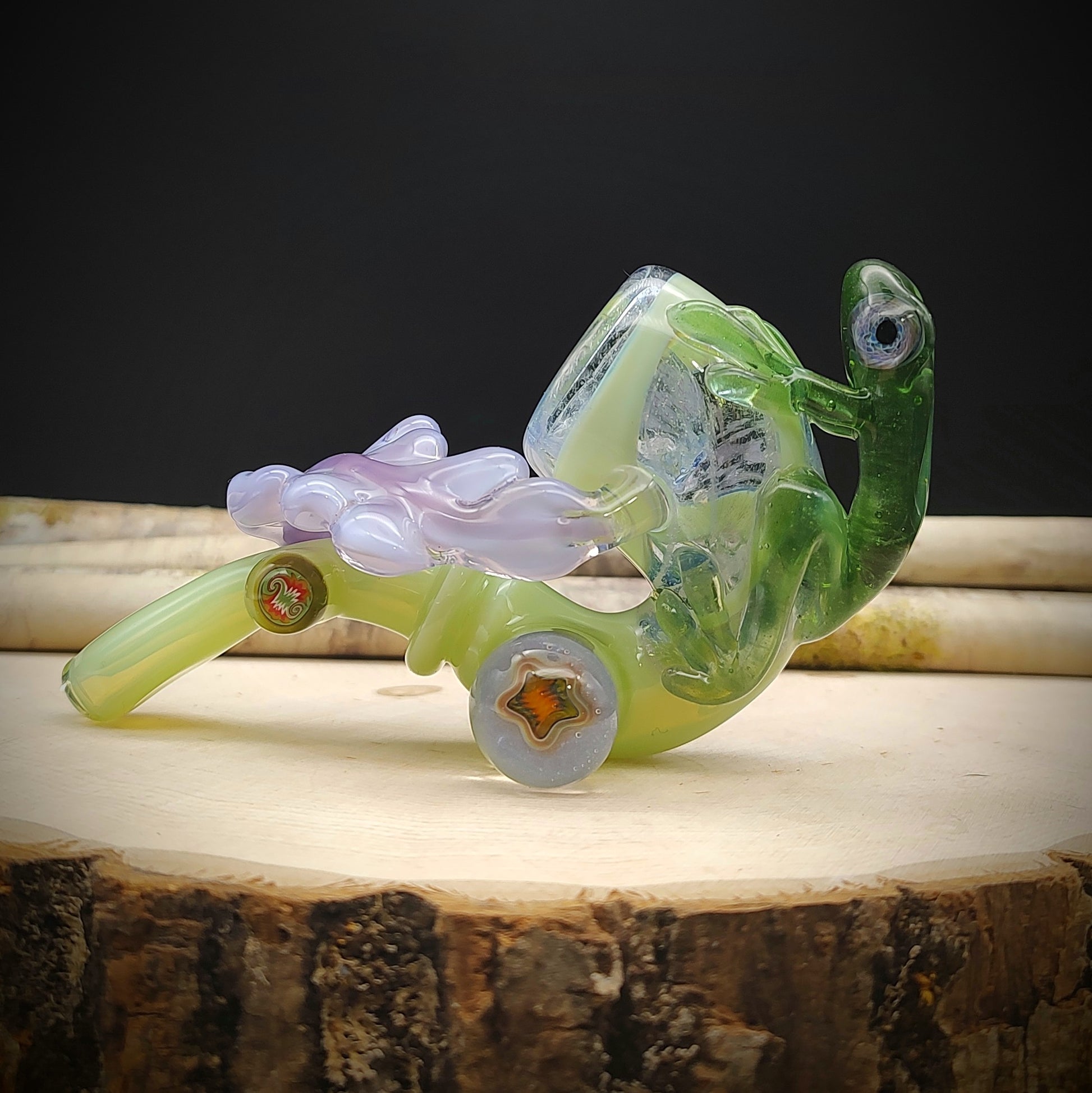 ¡Transforma tu experiencia de fumar con Dichro Swirl Frog Sherlock! El impresionante diseño de remolino dicro, acentuado por vibrantes mili y hojas moradas, elevará su estilo. Además, el accesorio de rana grande añade un toque de fantasía. ¡Disfruta de una experiencia de fumar única y llamativa!