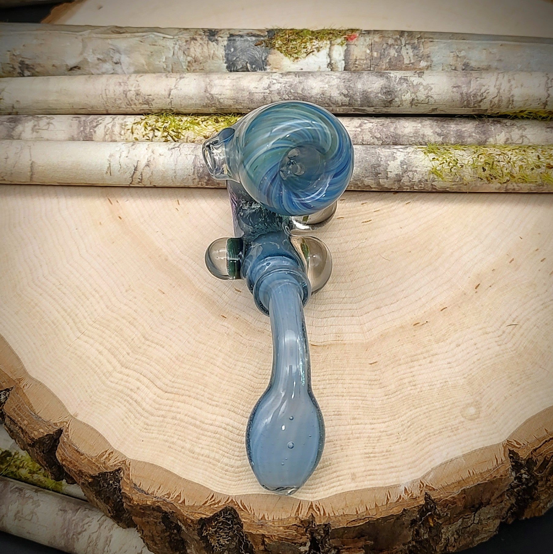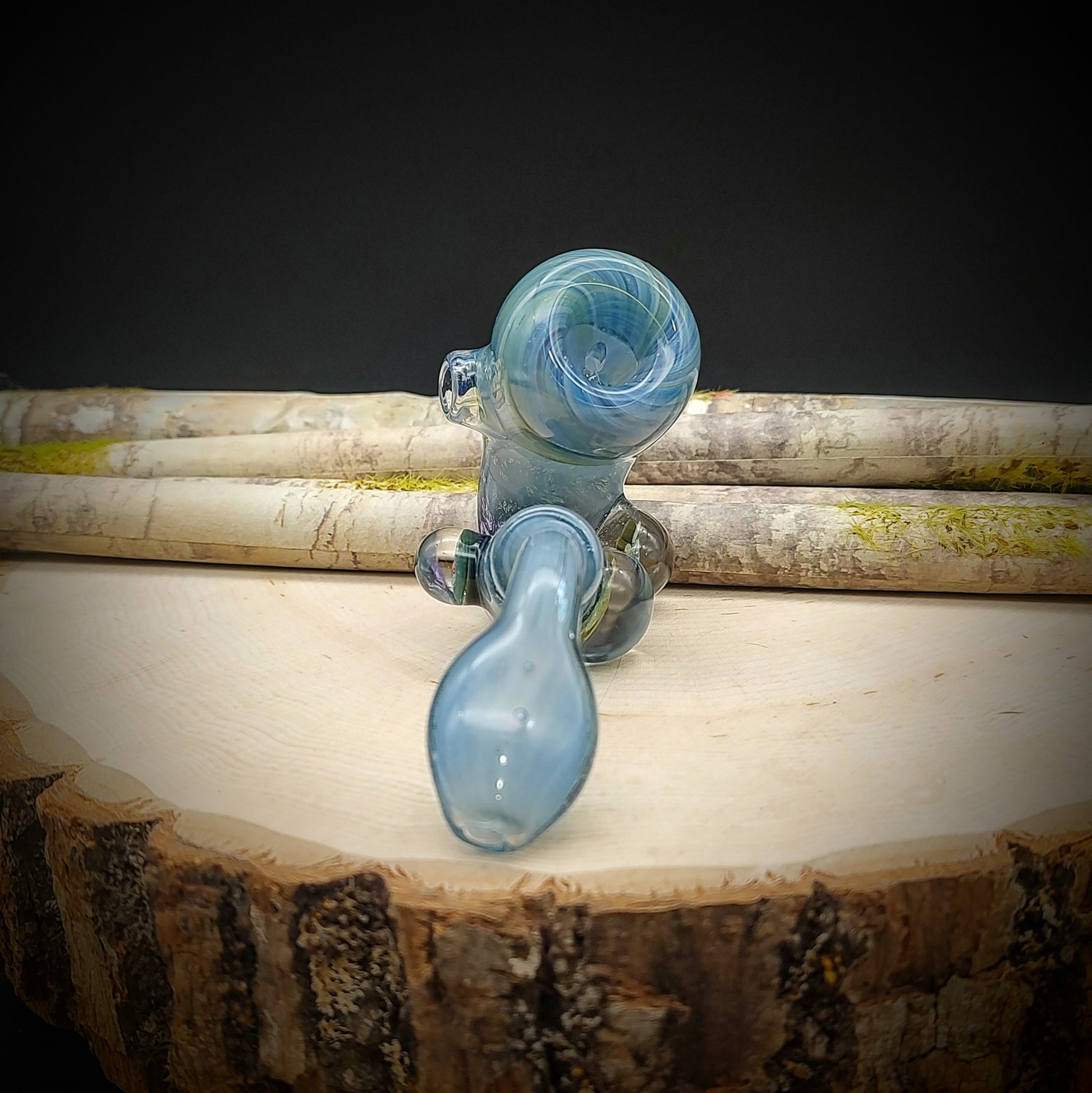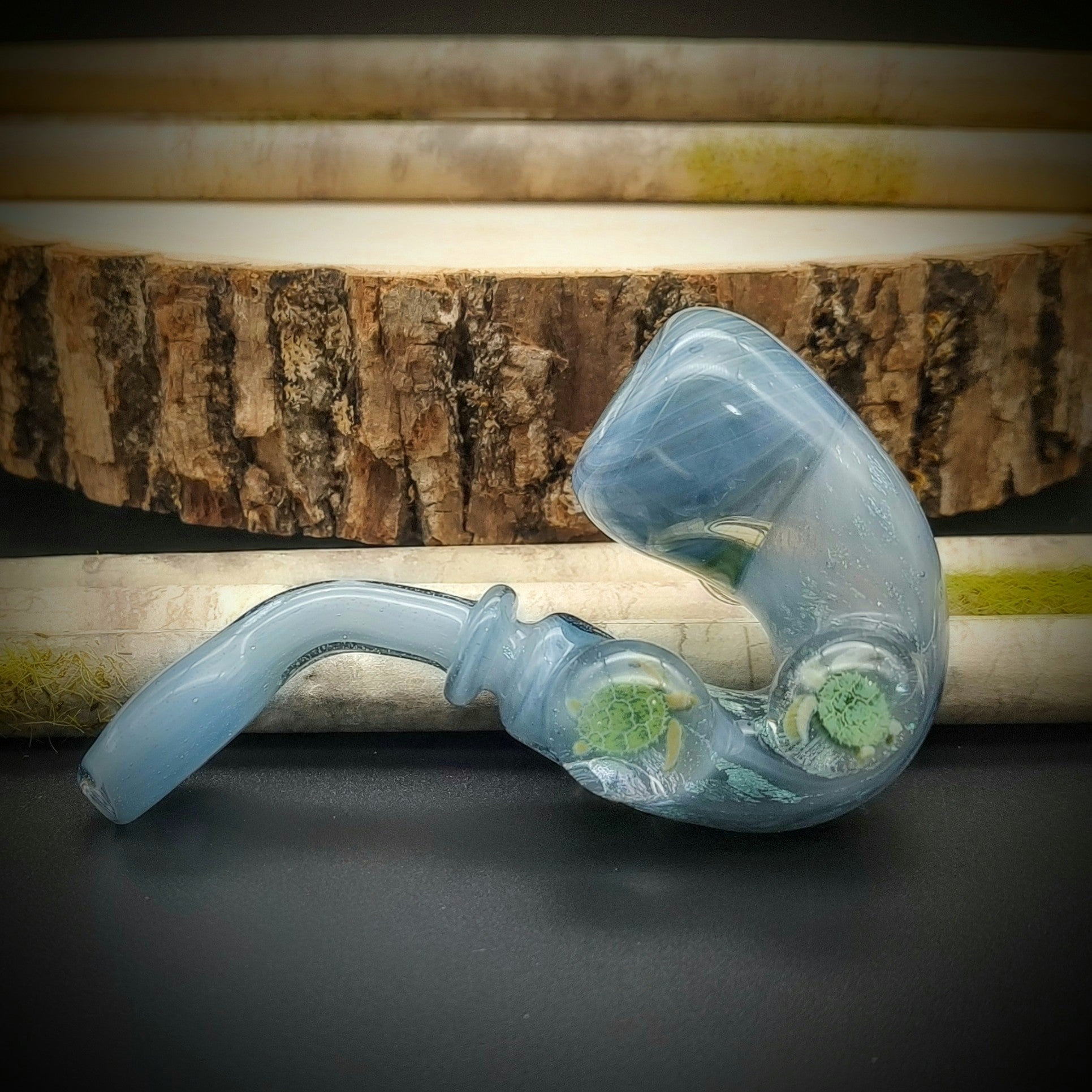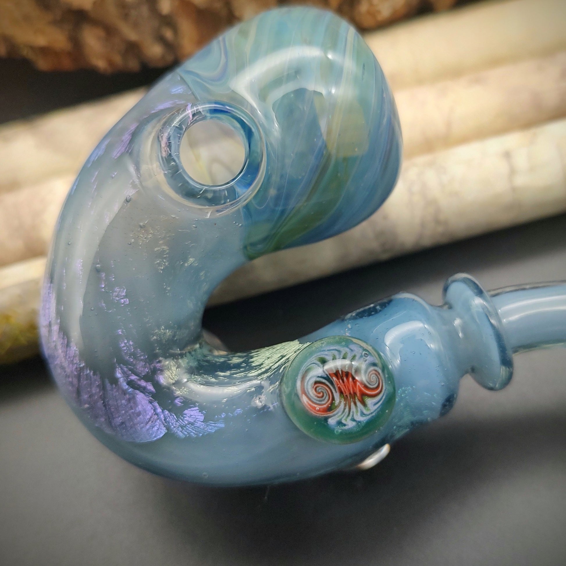 Descubra el Dichro Flake Sherlock: una obra maestra de intrincada cristalería que presenta dos mili de tortuga y un mili de inversión de peluca increíblemente logrado, colocado sobre una fascinante base de tubos azules y detalles de Dichro Flake. Disfruta de un tamaño de cuenco perfecto, con un ajuste fenomenal que se adapta perfectamente a tu mano. Vidrio de lujo en su máxima expresión.