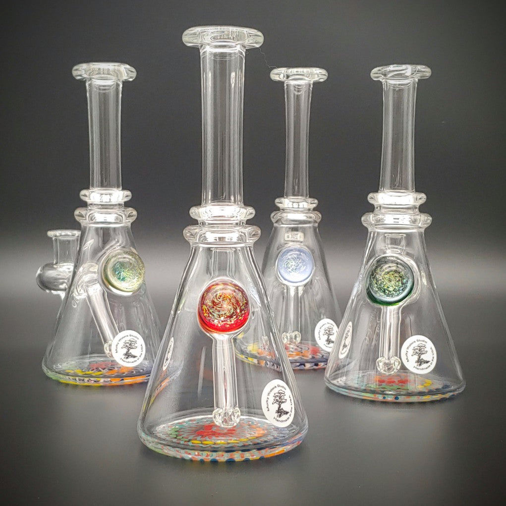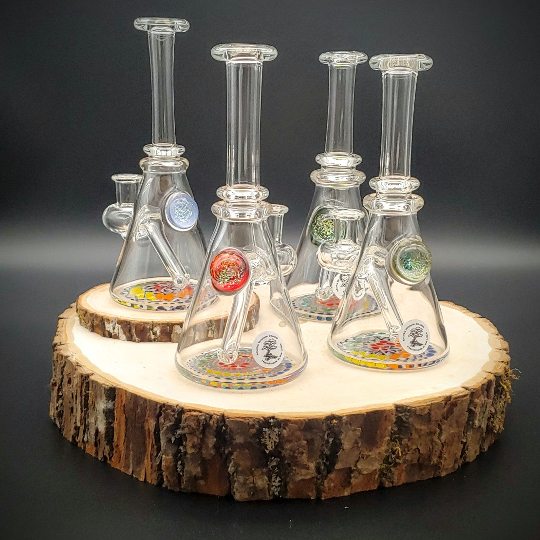 Mini plataforma de vaso de precipitados con un espectro completo de arcoíris, fondo de caña colorido y pequeño accesorio dicro
