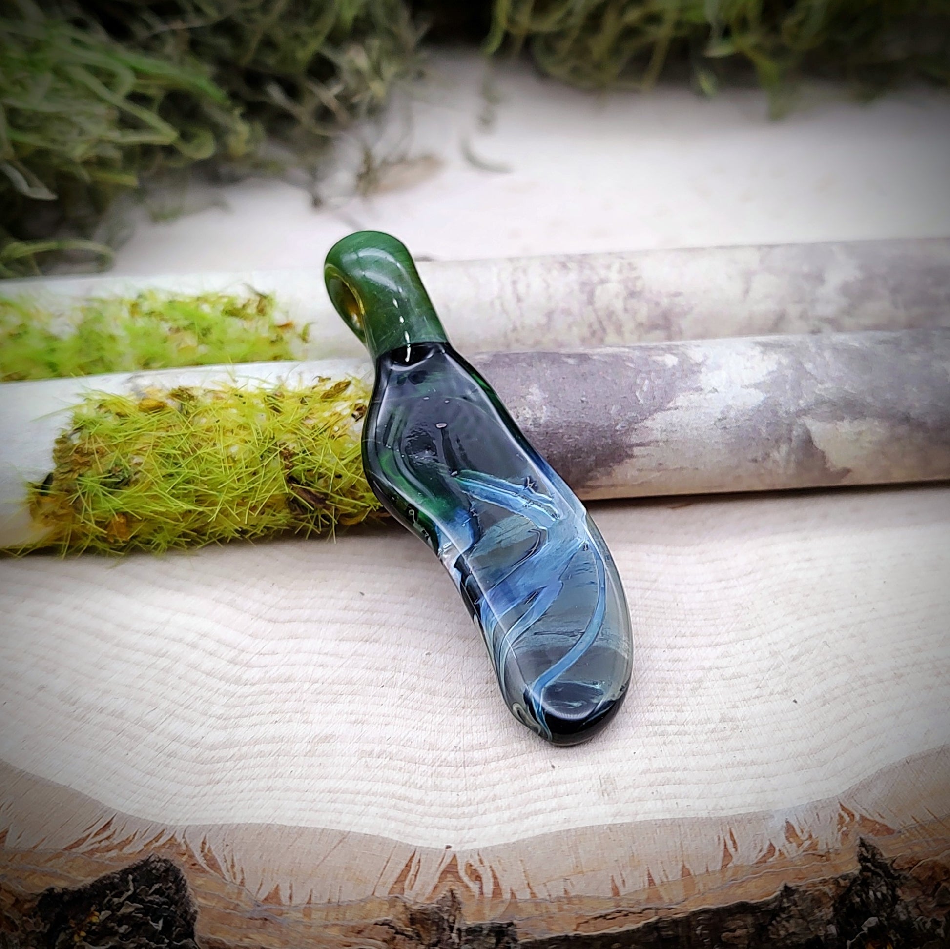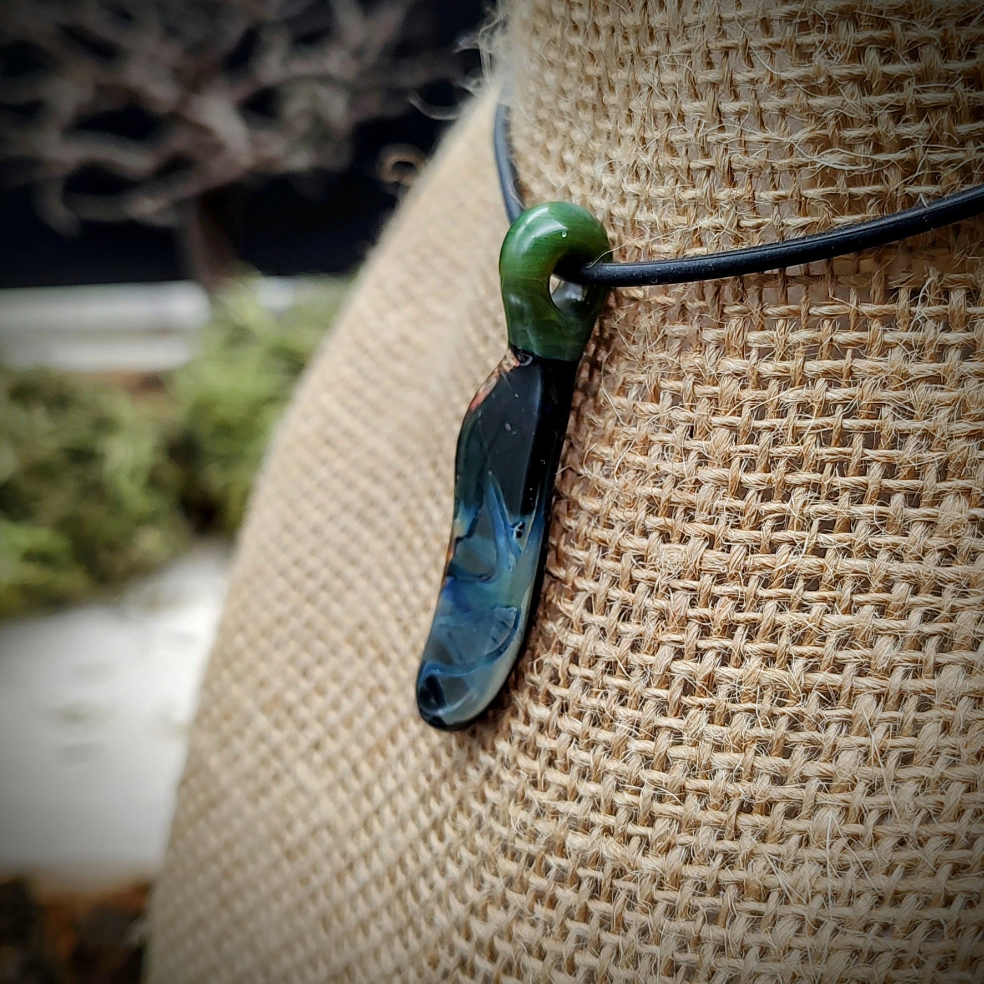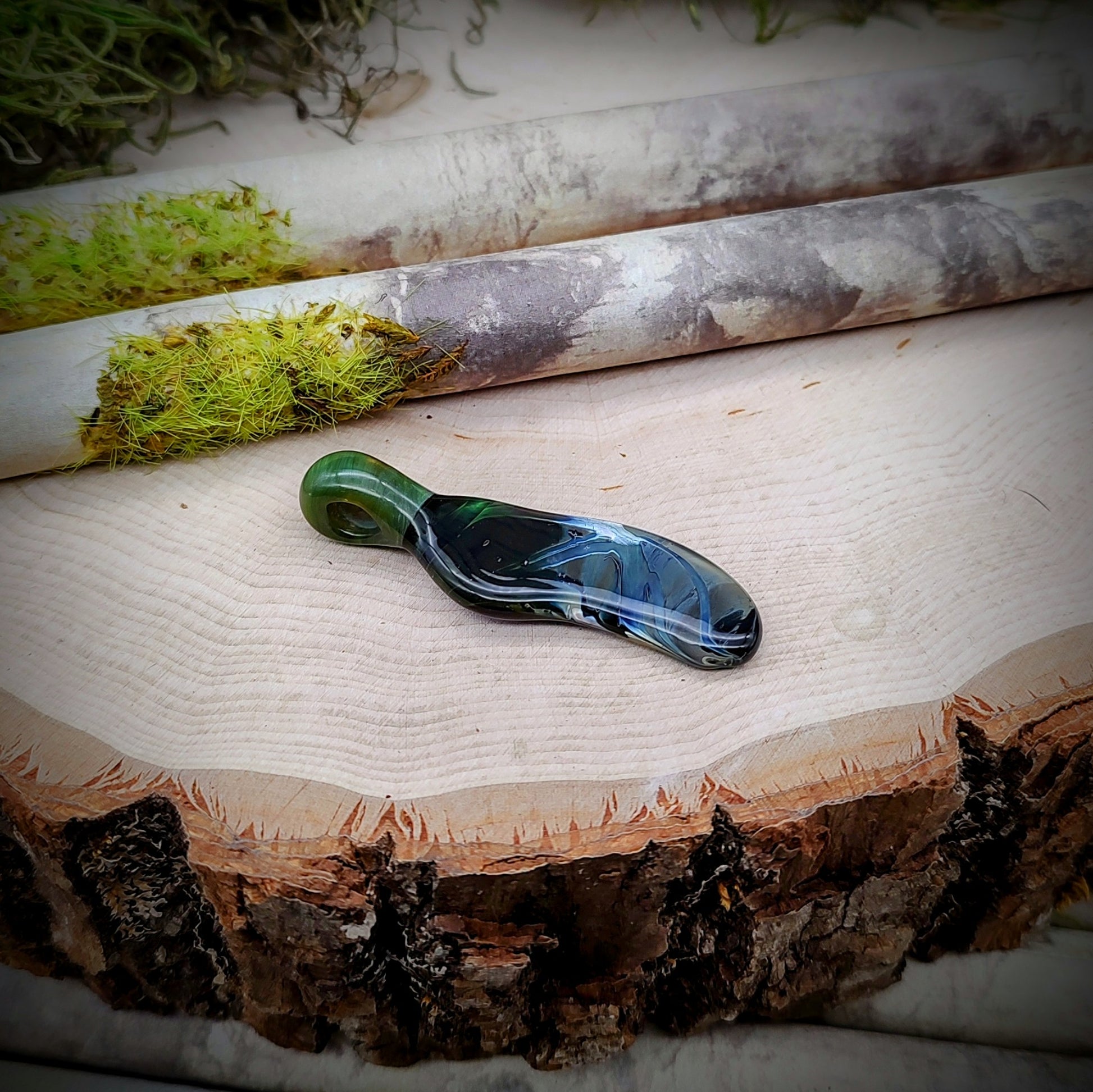 Este colgante Fumed Askew es el complemento perfecto para cualquier colección. Elaborado con tonos de verde y azul para una estética llamativa, el colgante está hecho de un metal con infusión de vapor que crea un brillo y brillo únicos. Listo para enviar, agregue este colgante a su guardarropa hoy.