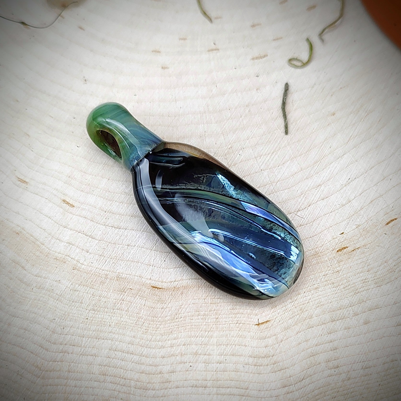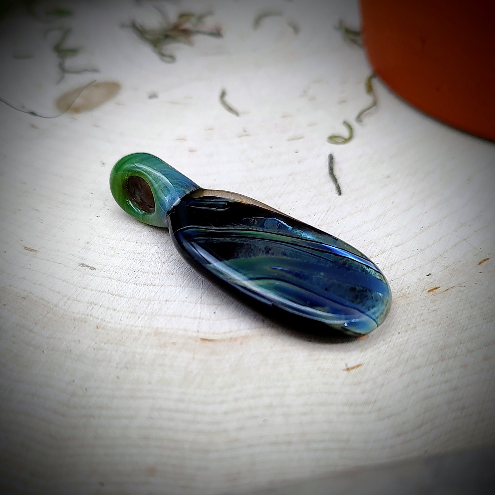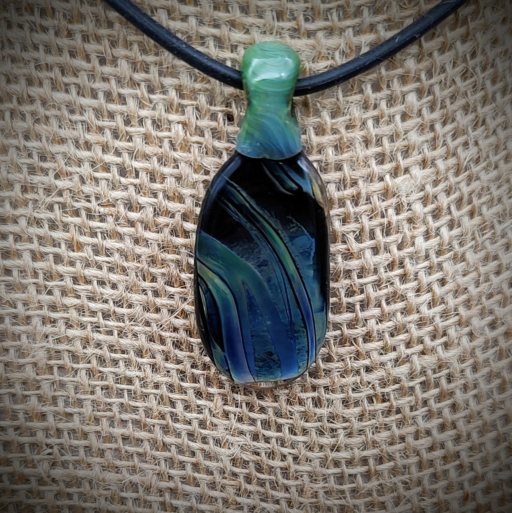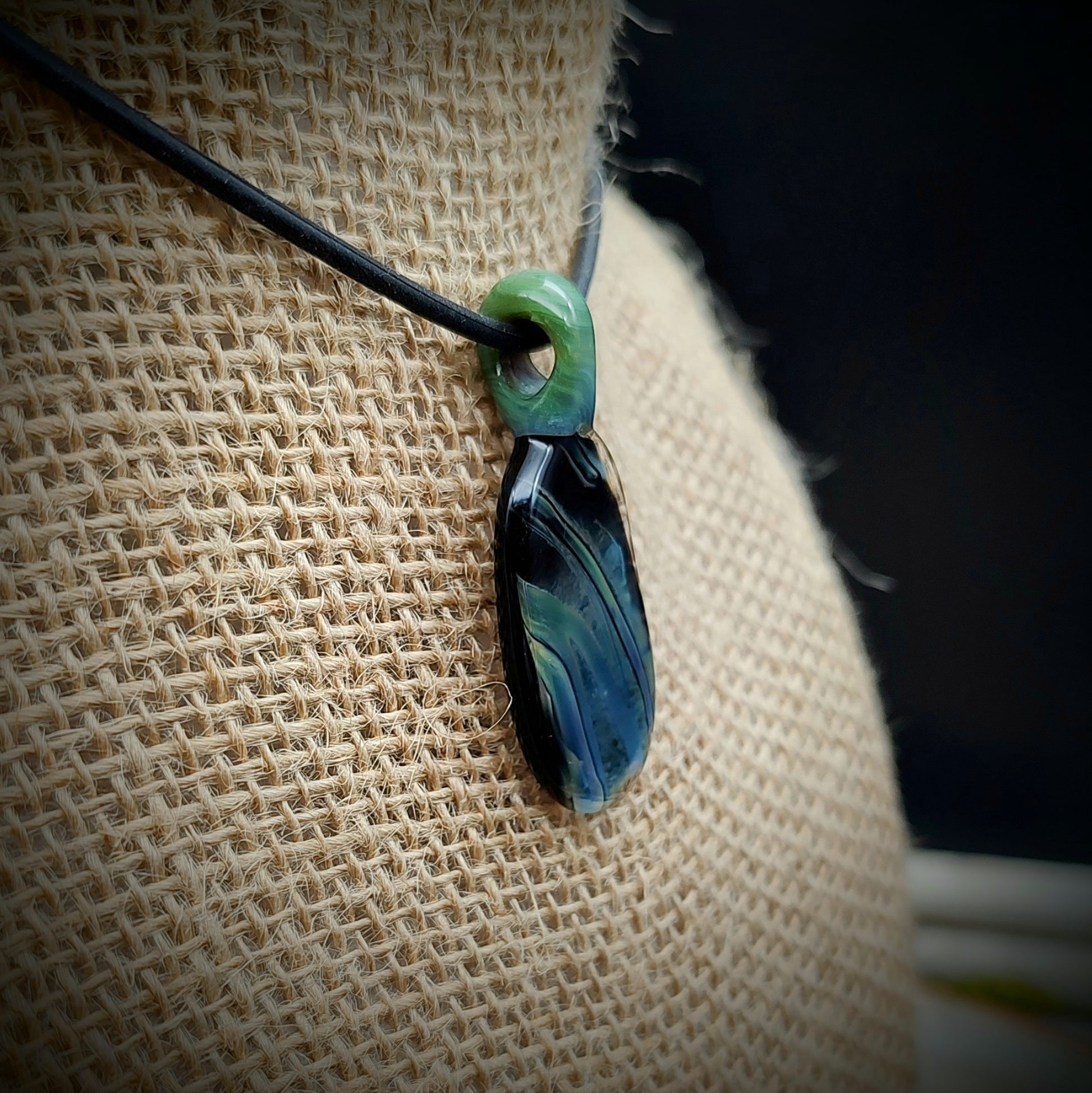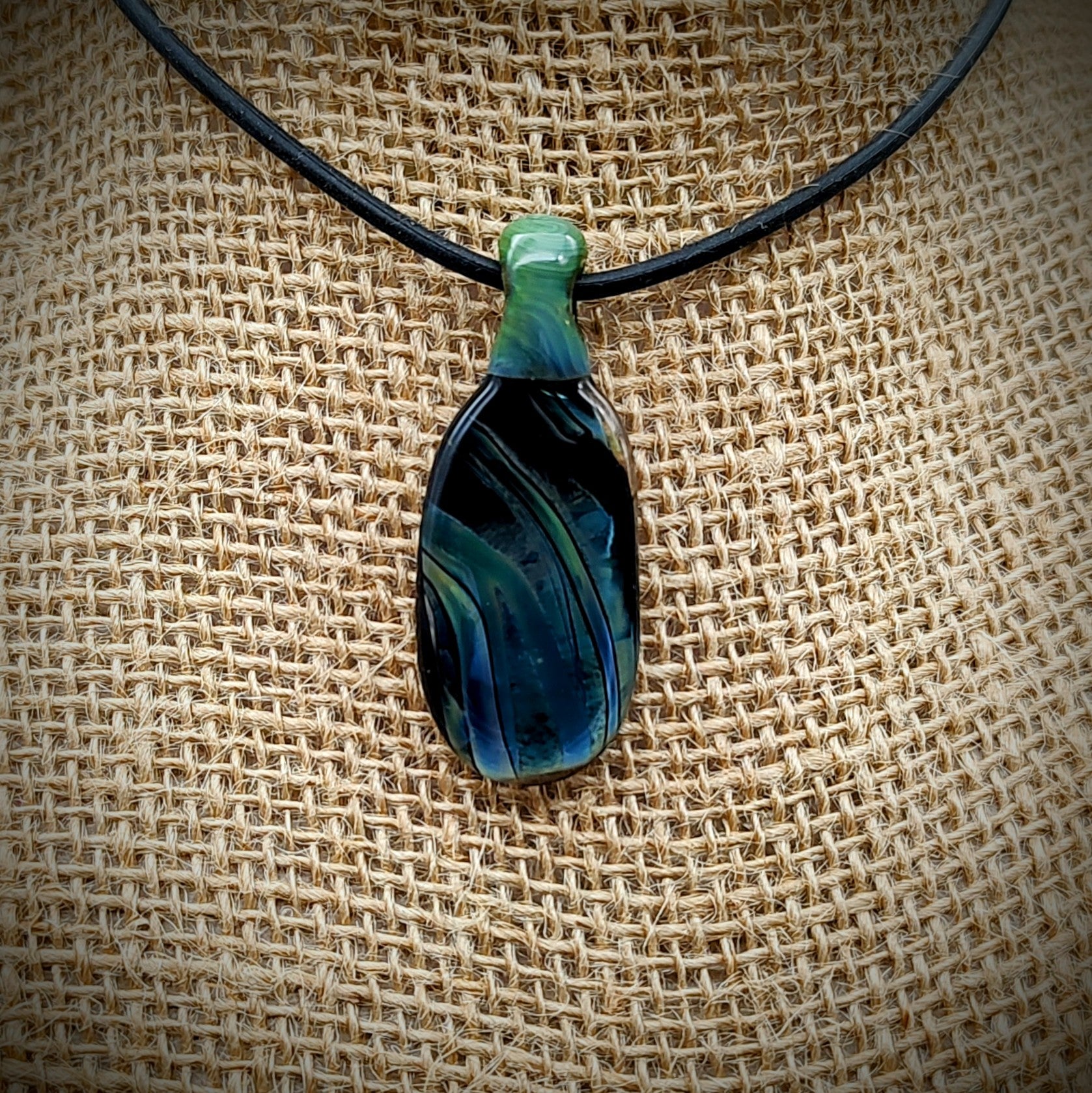 Nuestro colgante Fumed Askew es la forma perfecta de añadir un toque de brillo y brillo a tu look. Los azules y verdes metálicos brillan maravillosamente contra el respaldo negro, lo que hace que esta pieza sea ideal para combinar con atuendos de día y de noche. Listo para enviar hoy y expresar tu estilo.