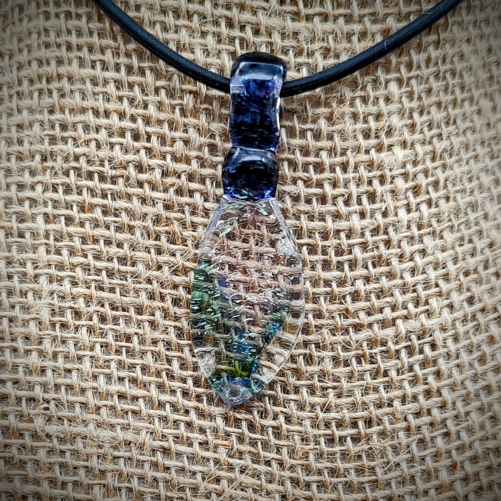 ¡Este impresionante colgante es espectacular! Elaborado con vidrio transparente con una luz sutil humeante y dicro verde vibrante, ¡este colgante seguramente llamará la atención! Muestra tu estilo único y al mismo tiempo destaca entre la multitud. ¡Listo para enviar!
