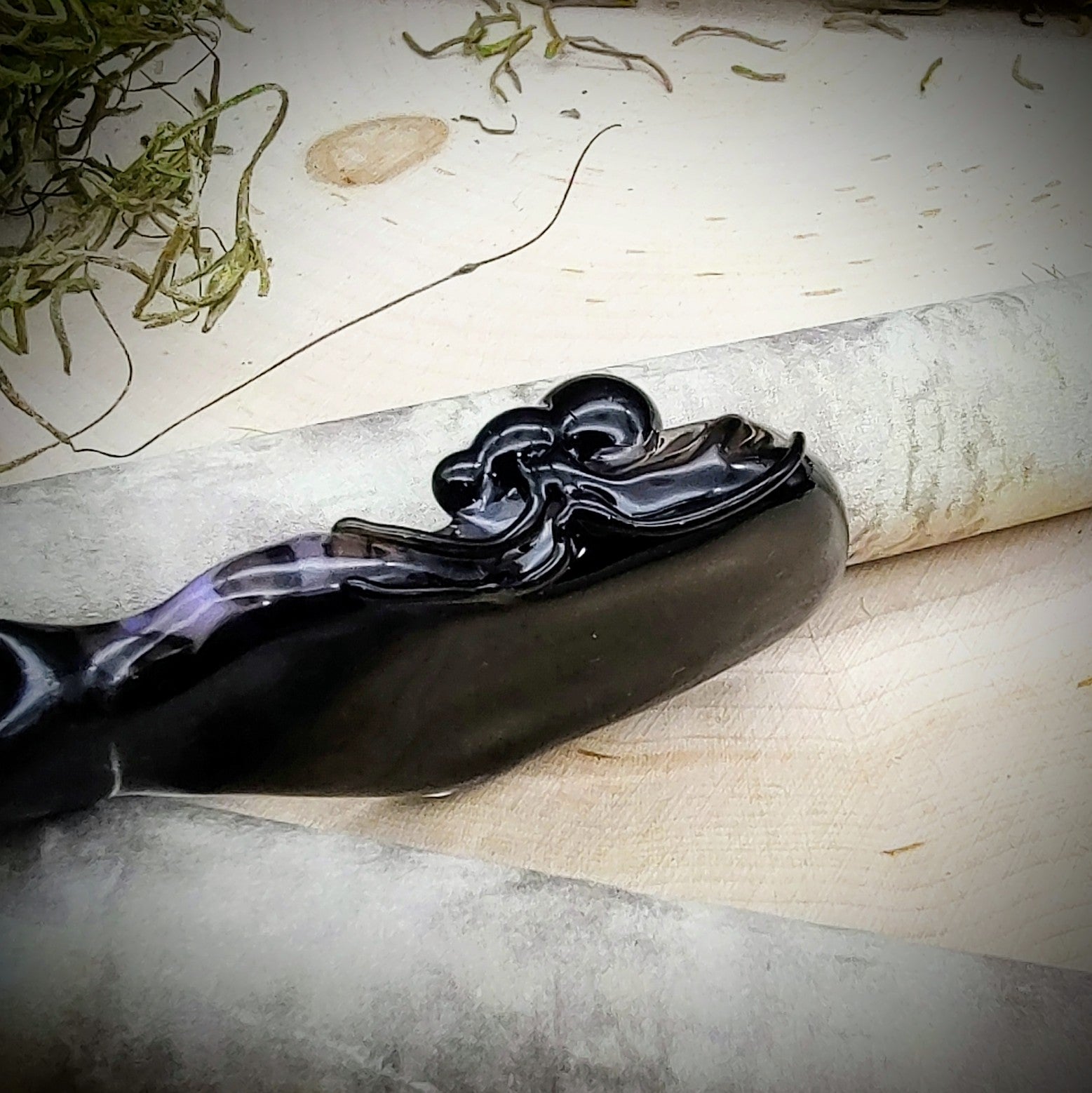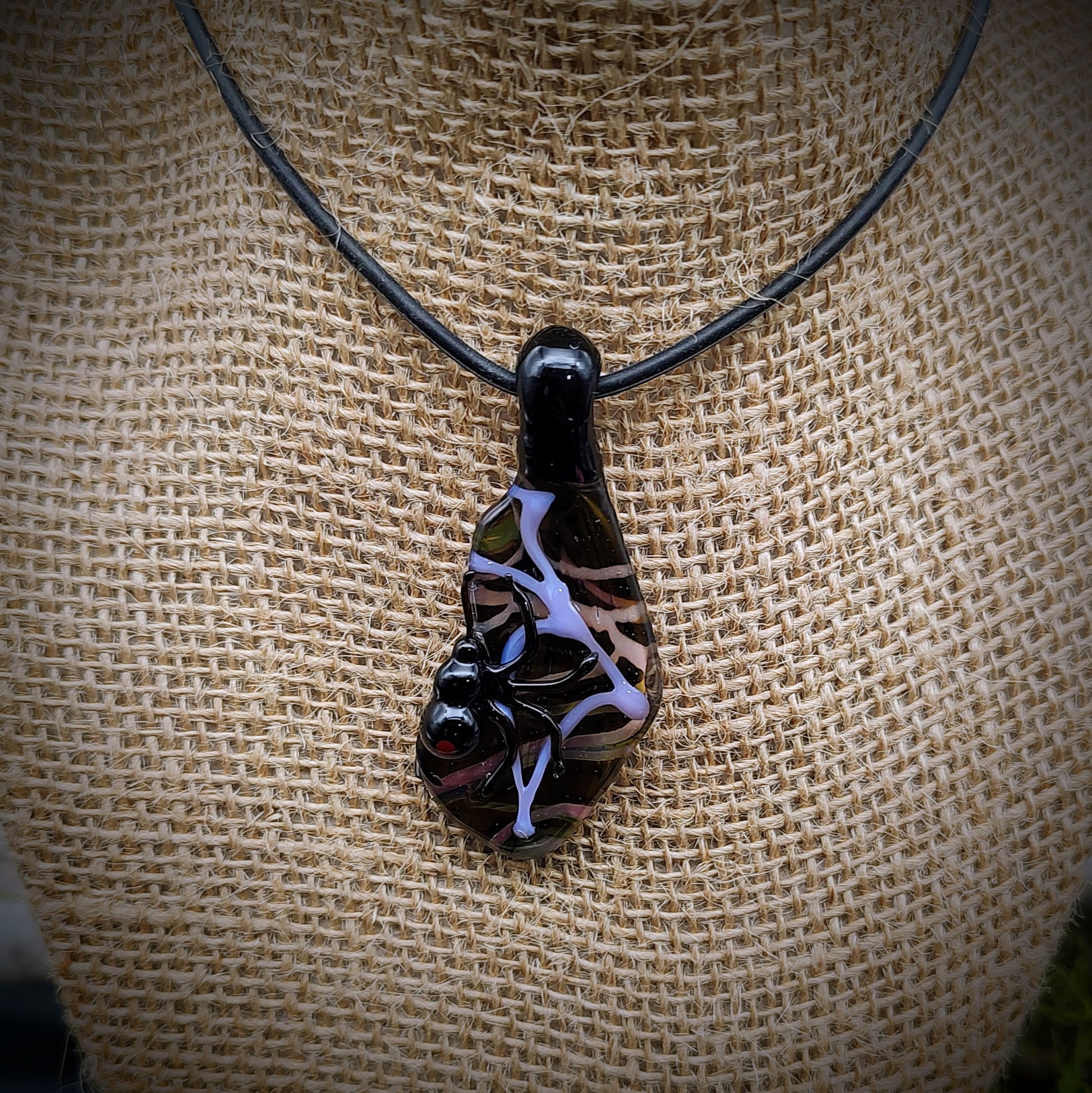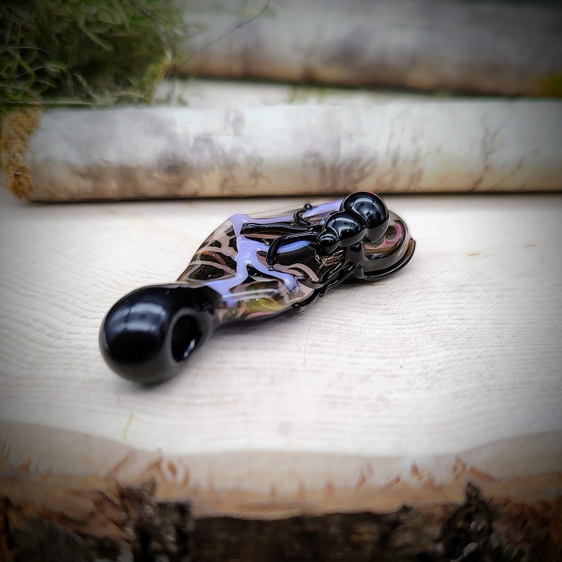 ¡Atrapa una araña rara, salvaje y única con este colgante de araña ahumado! Presenta una araña negra con una telaraña morada sobre un fondo negro ahumado para una apariencia única y torcida. Este pequeño está listo para llamar la atención, ¡así que no te lo pierdas!