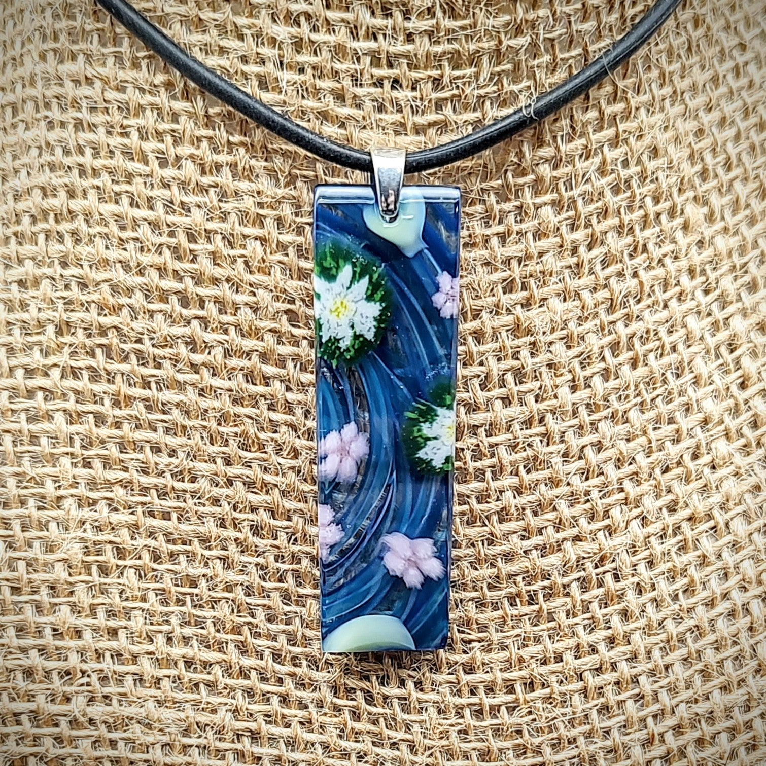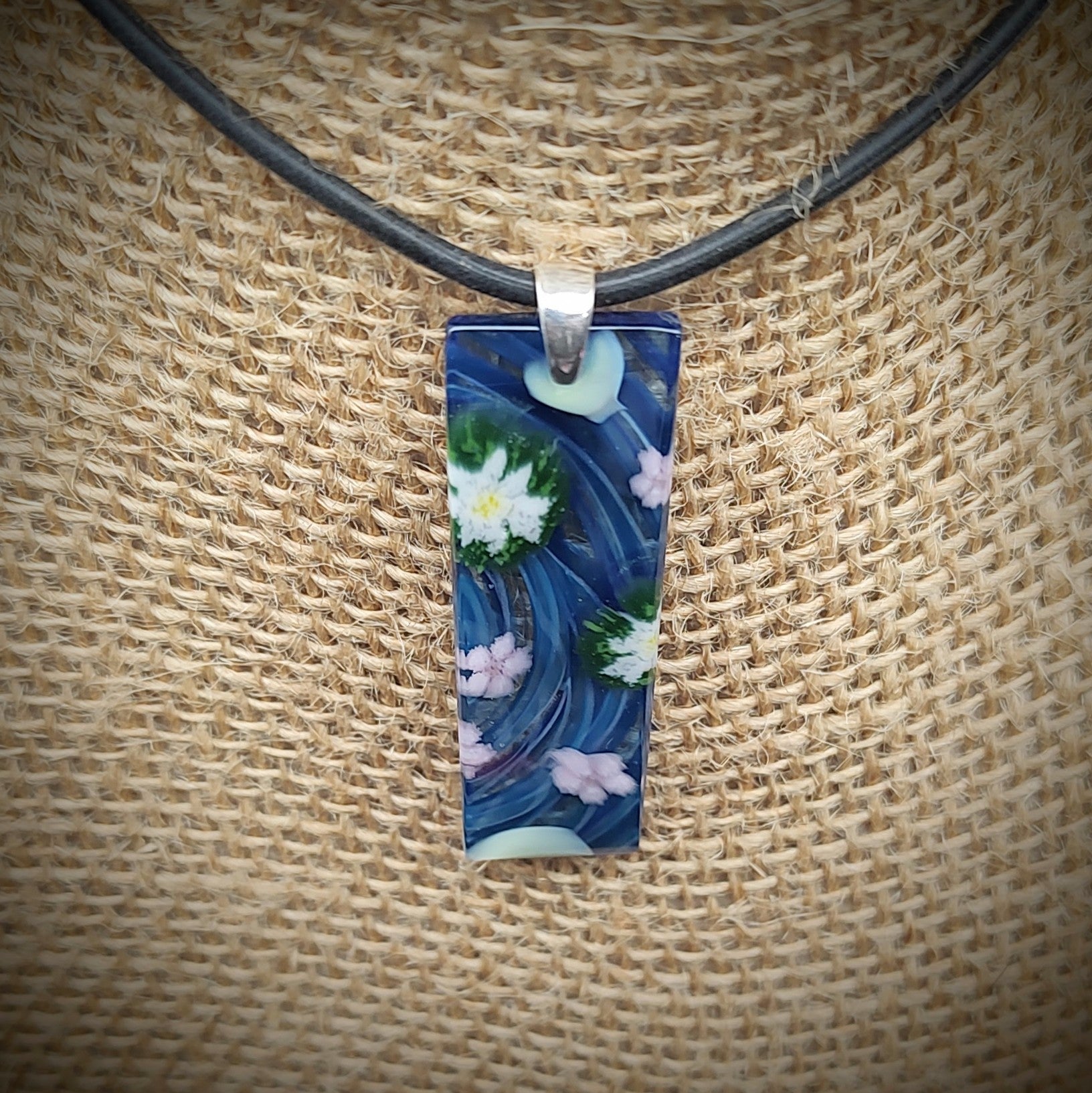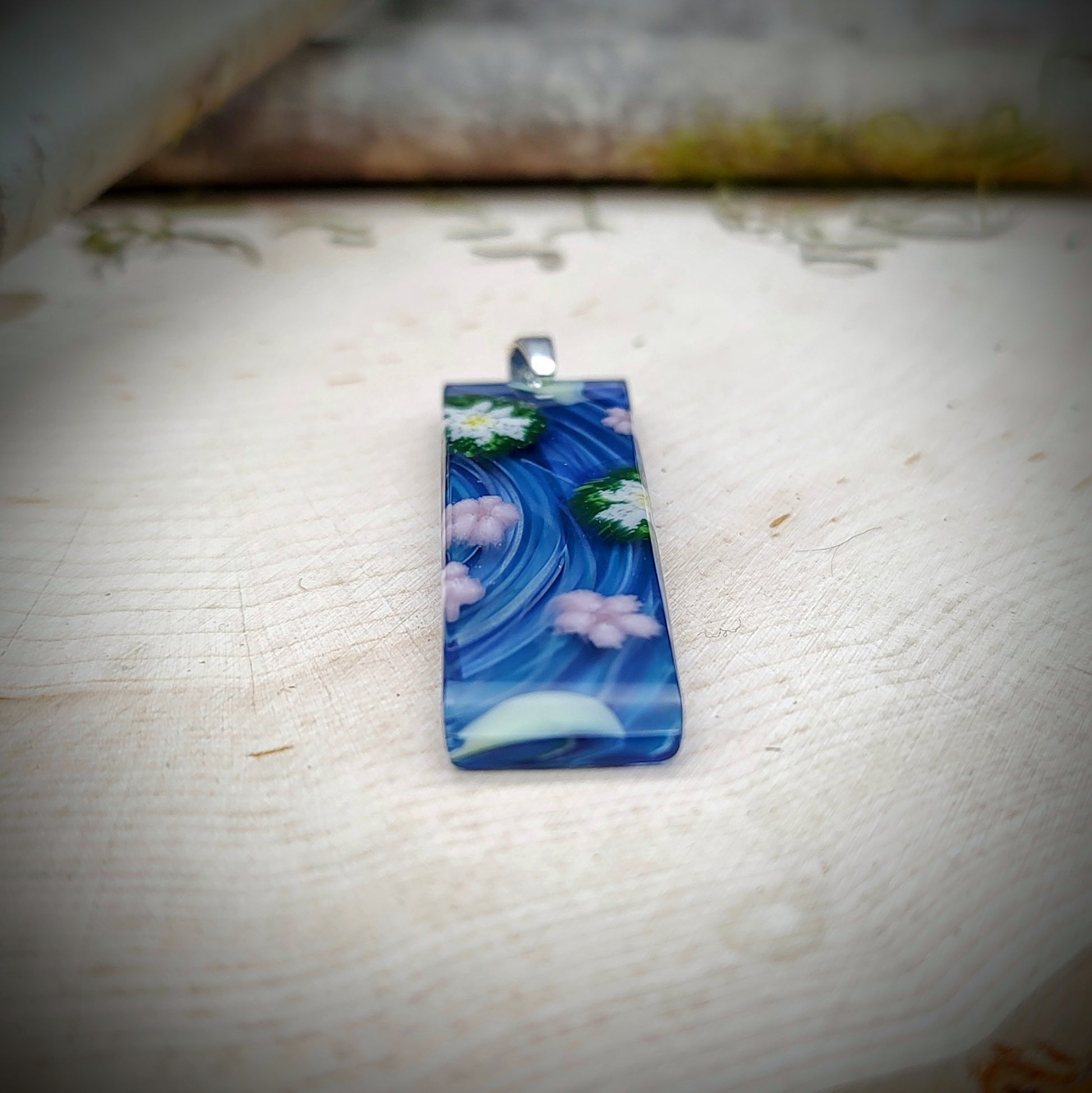 Haga una declaración con este colgante único. Elaborado con una fianza de plata de ley, este encantador colgante presenta un estanque koi, flores y nenúfares. Esta pieza elegante y atemporal añadirá un toque de lujo discreto a cualquier look.