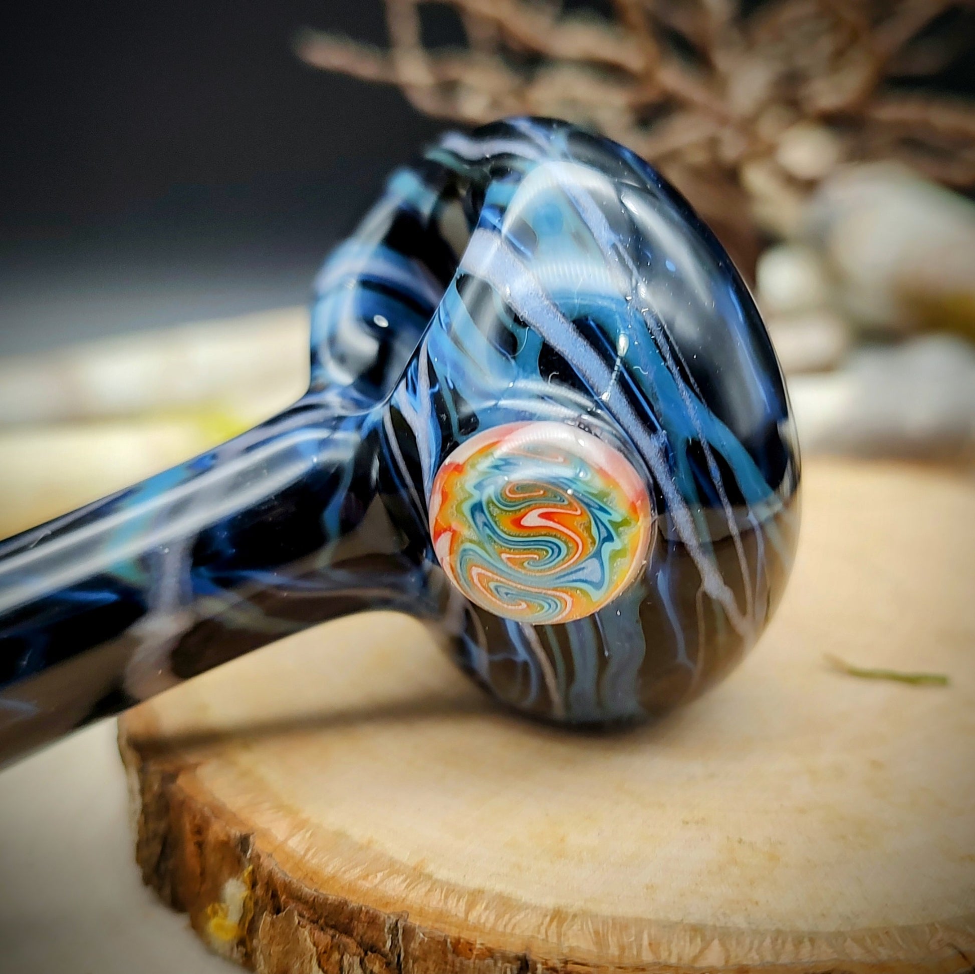 La impresionante pipa de mano Milli Marbled presenta diseños vibrantes y arremolinados en su tubo de alta calidad.