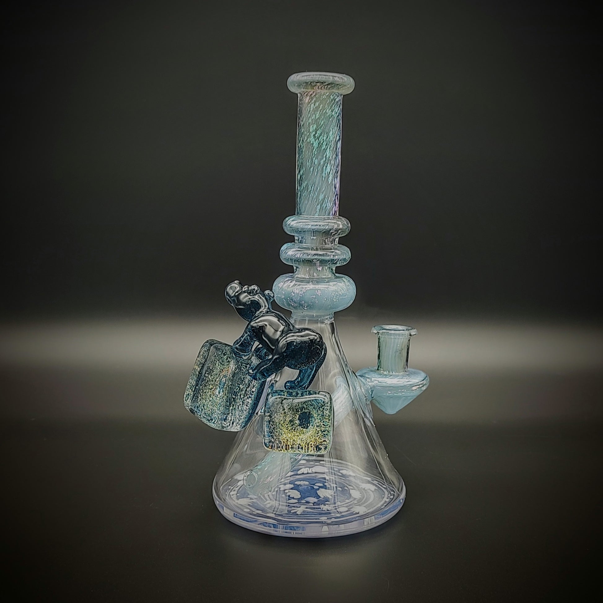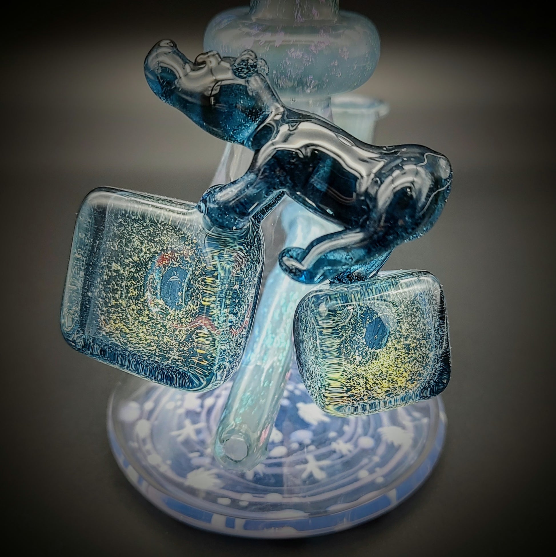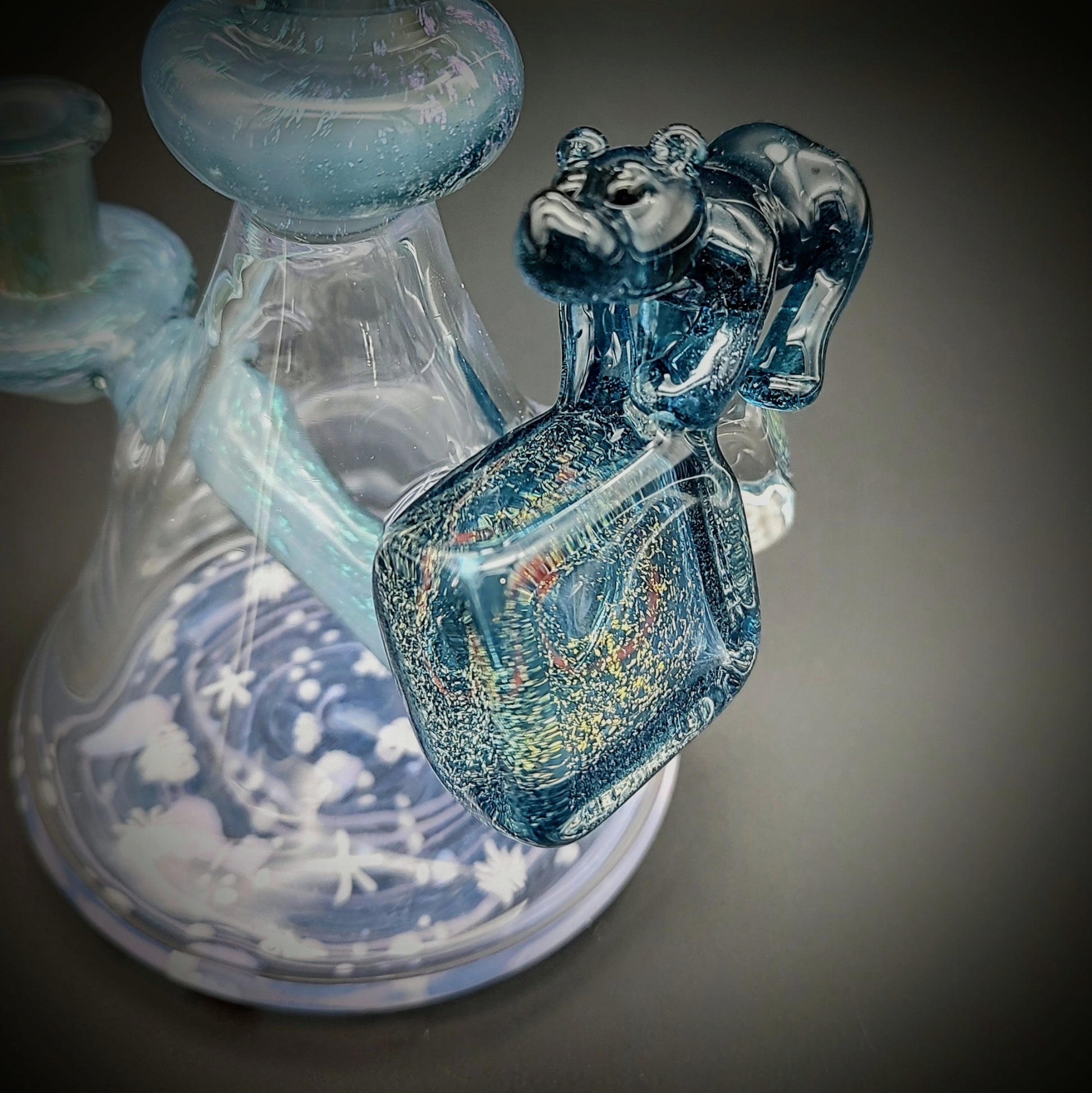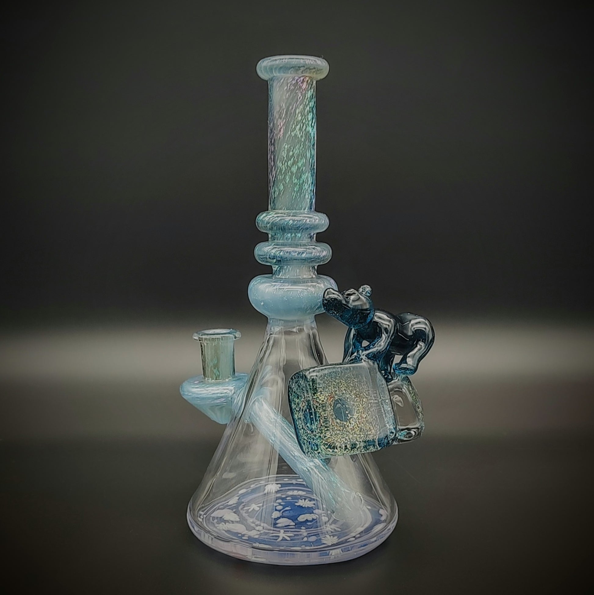 Nuestro "Oso Polar sobre Hielo Dicro Minitubo" es la combinación perfecta entre calidez y elegancia. Con un oso polar Atomic Stardust sobre cubos dicroicos helados, la pieza está rematada con un efecto de país de las maravillas invernal, lo que la convierte en una adición lujosa a cualquier colección.