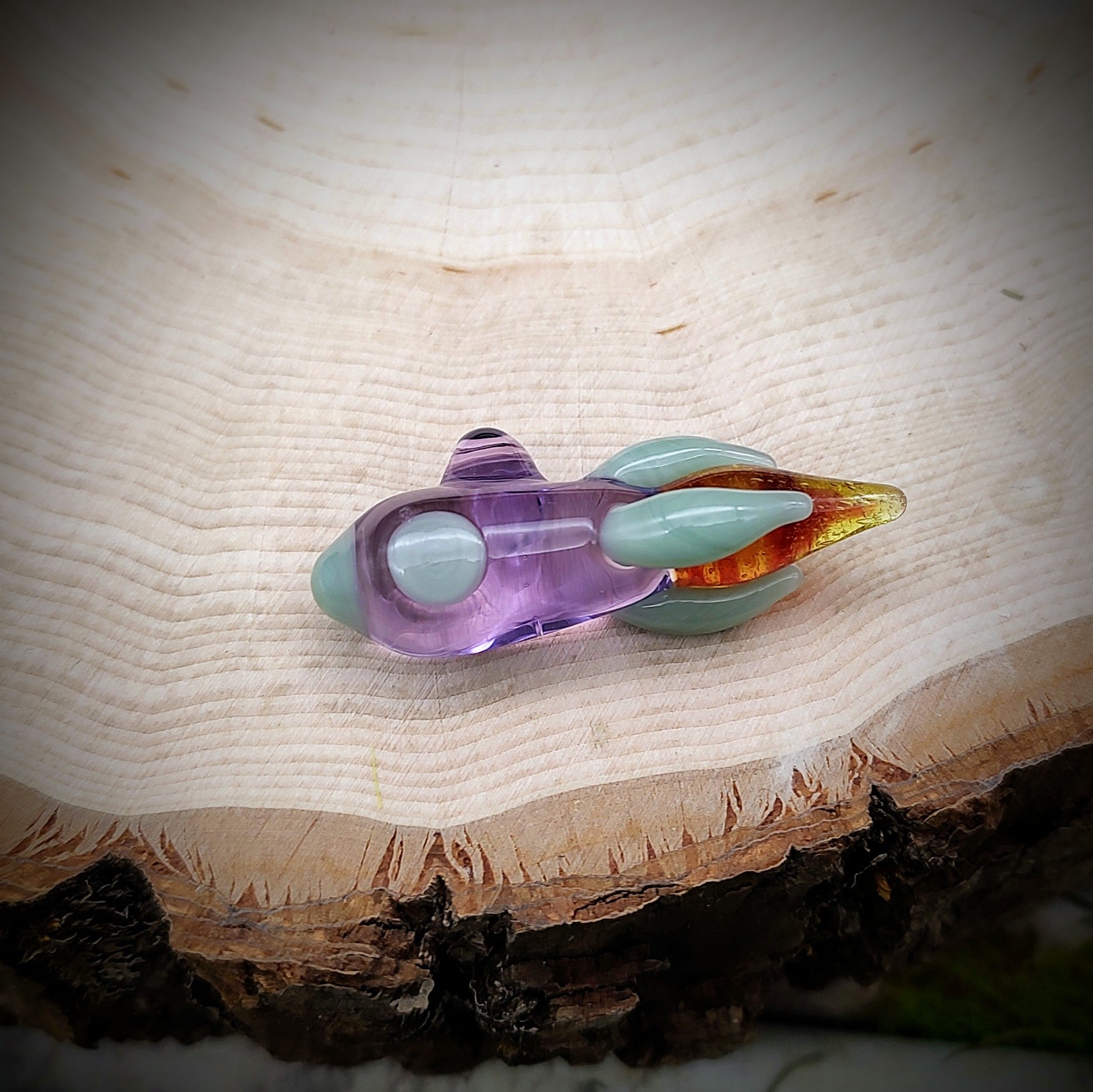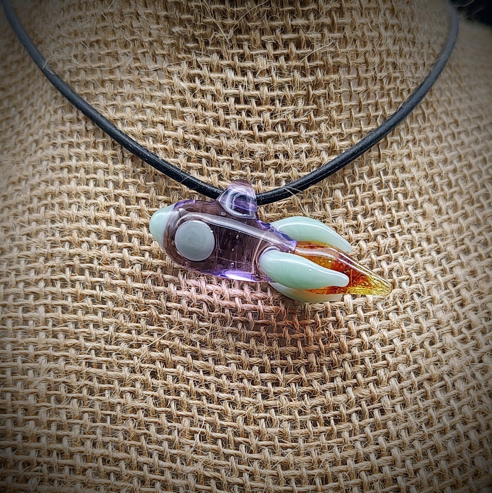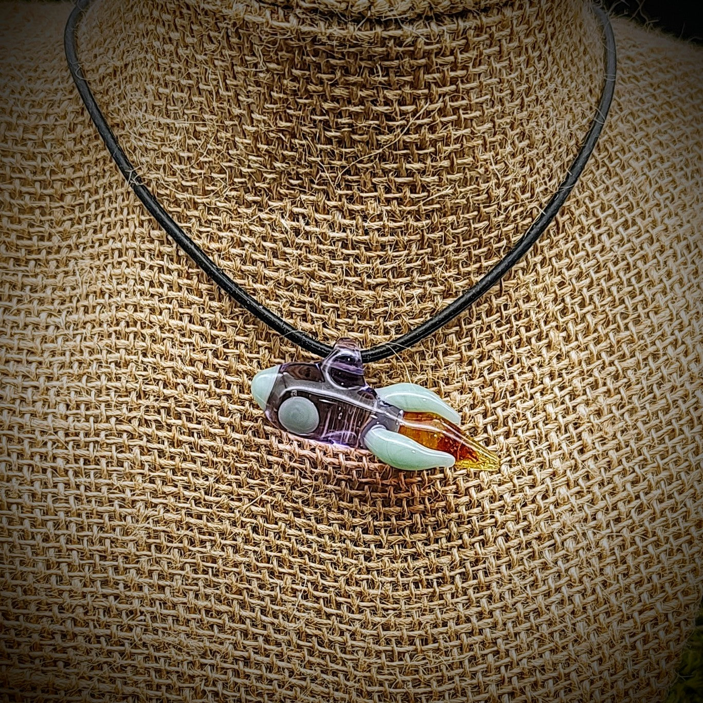 Saluda a nuestro colgante Rocket. Elaborado con cautivadores reflejos transparentes de color púrpura y verde menta, este exquisito colgante agregará un toque etéreo a tu look. ¡Agregue una declaración única y elegante con este colgante de edición limitada y despegue con estilo!
