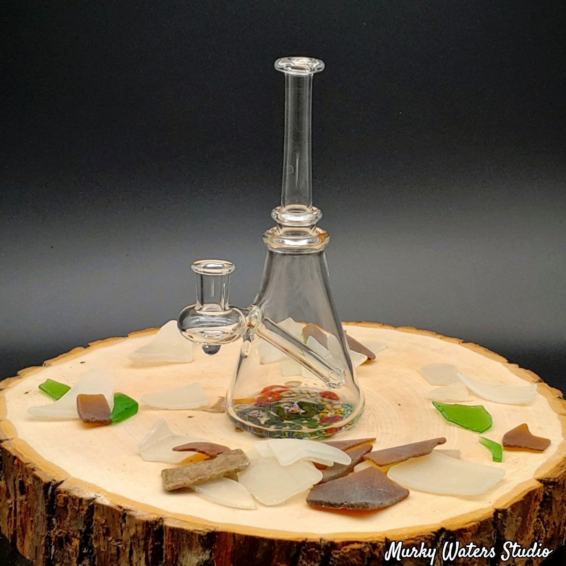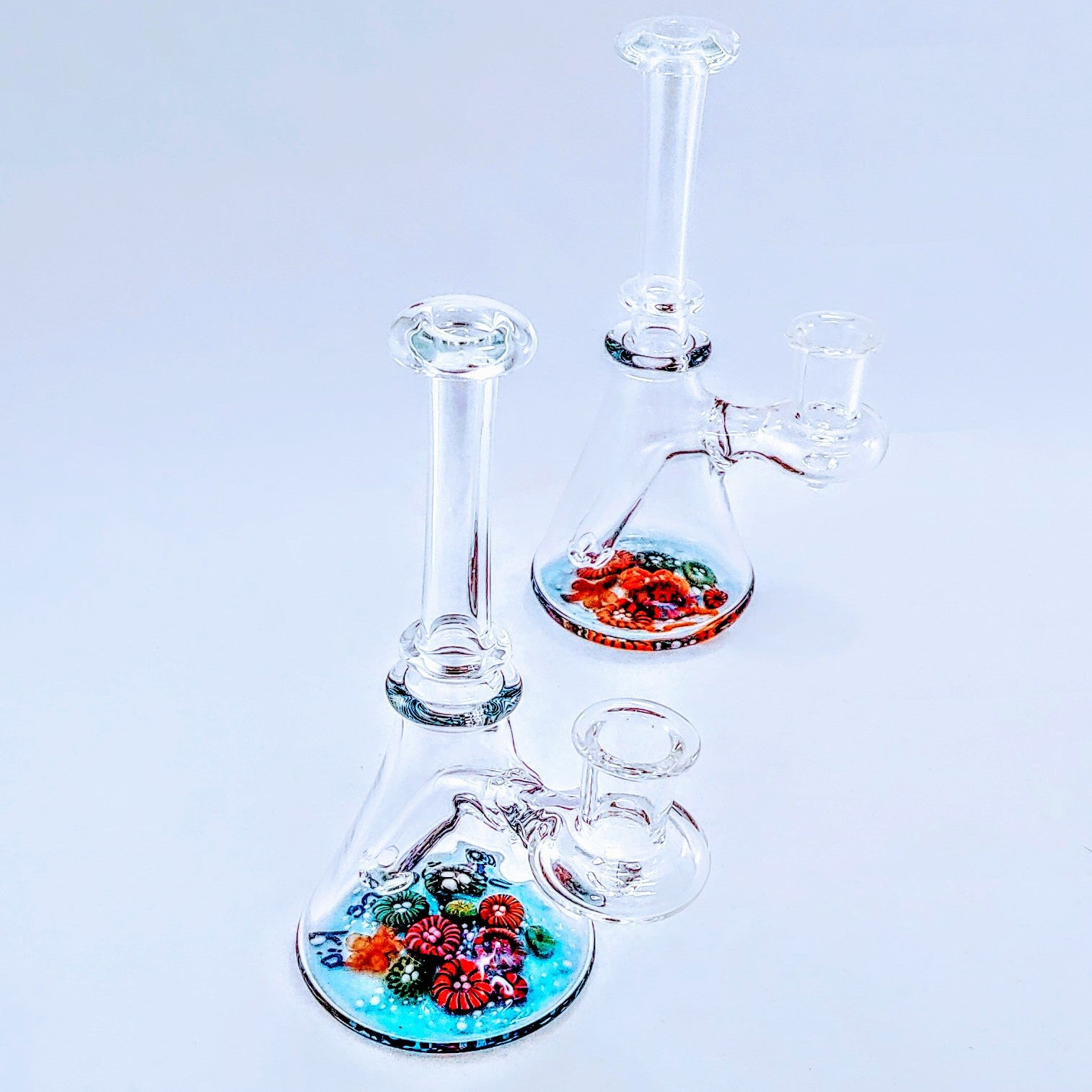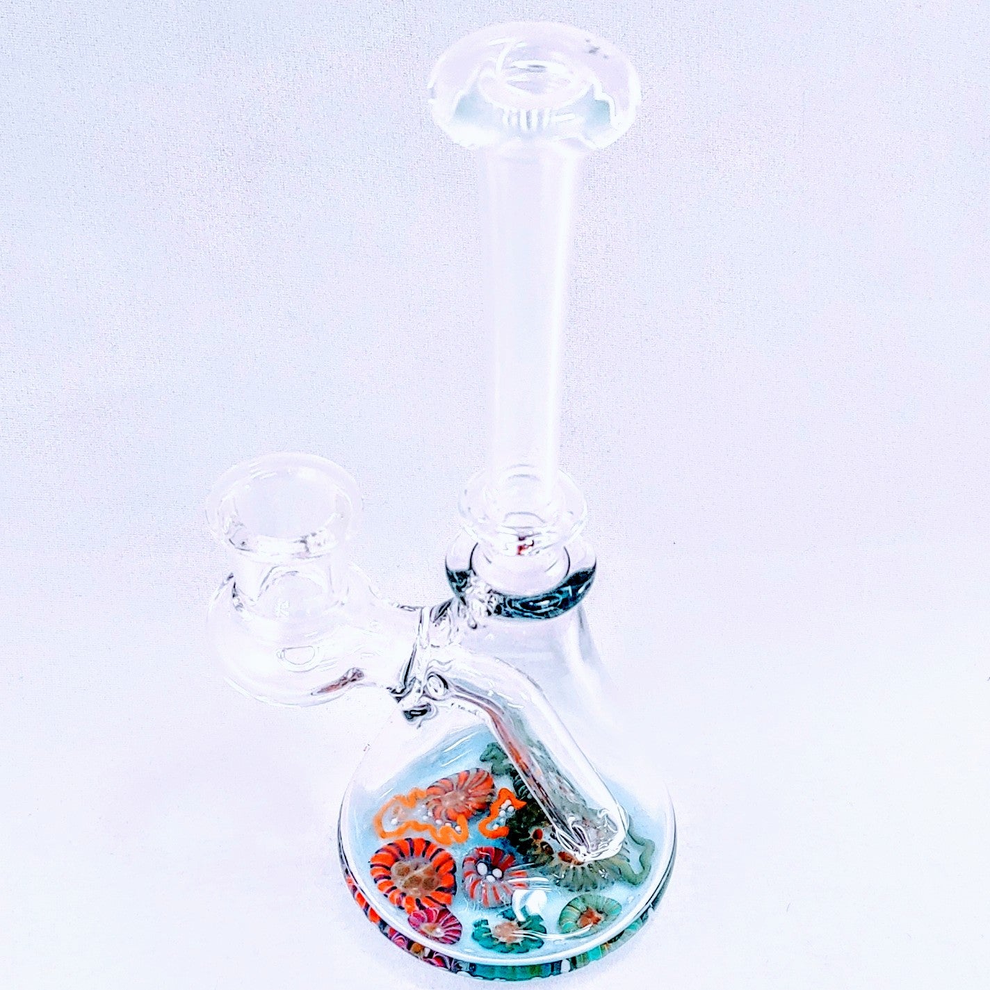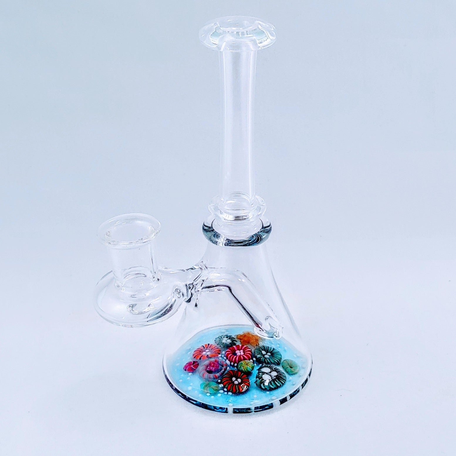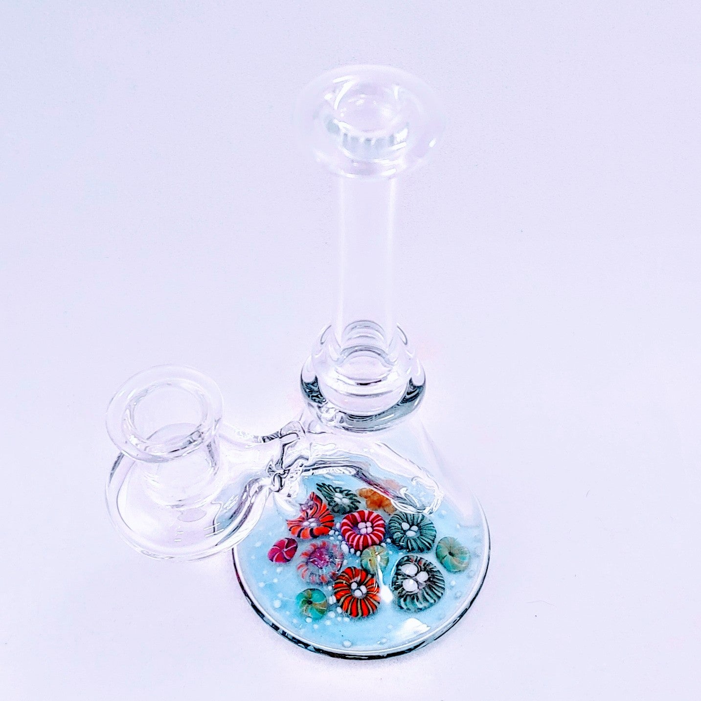 Un aparejo transparente en forma de vaso con un hermoso fondo marino.
