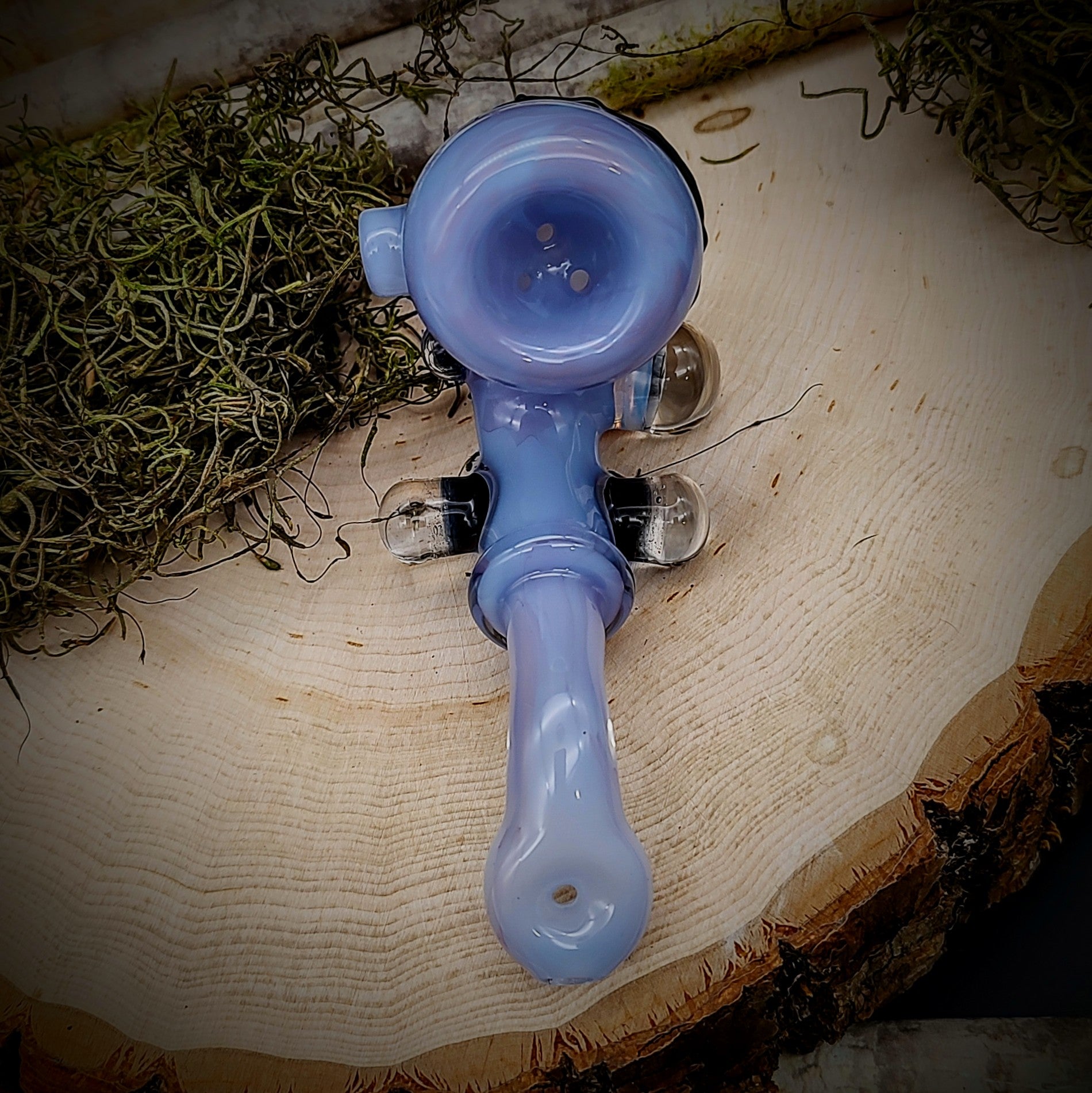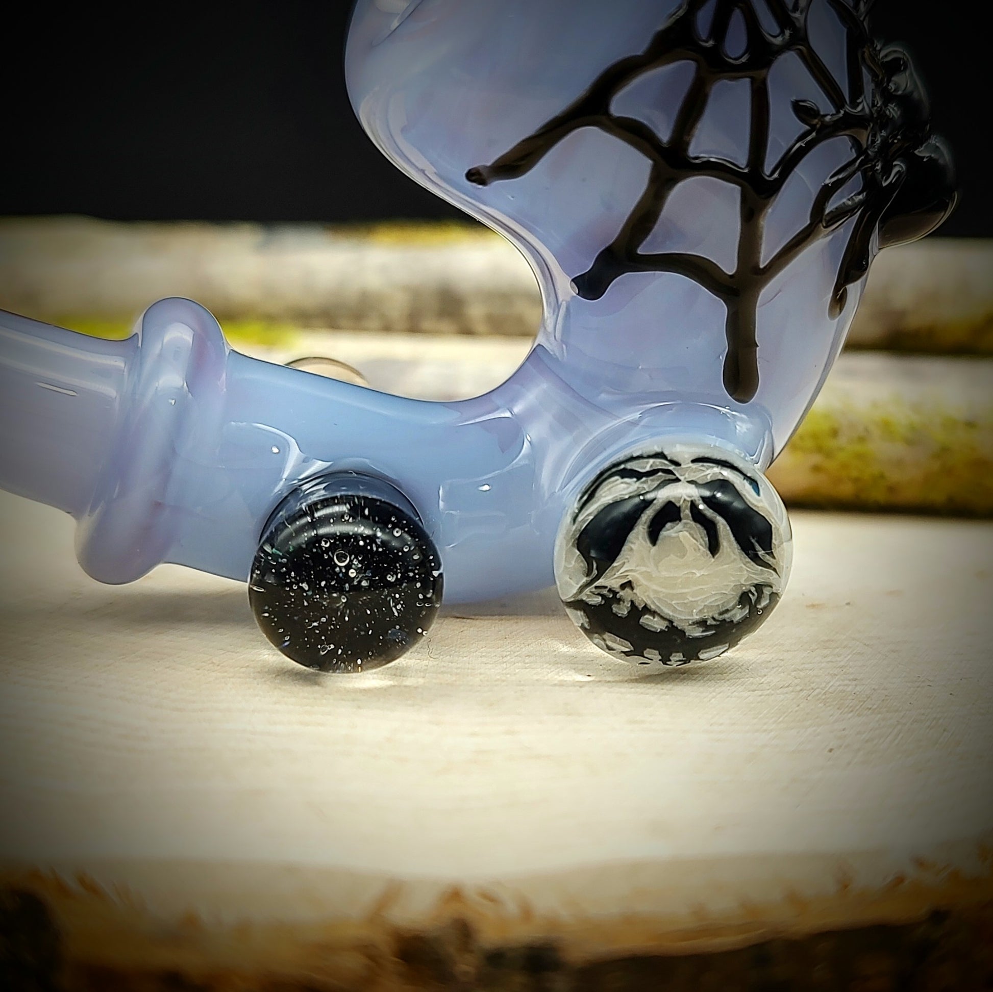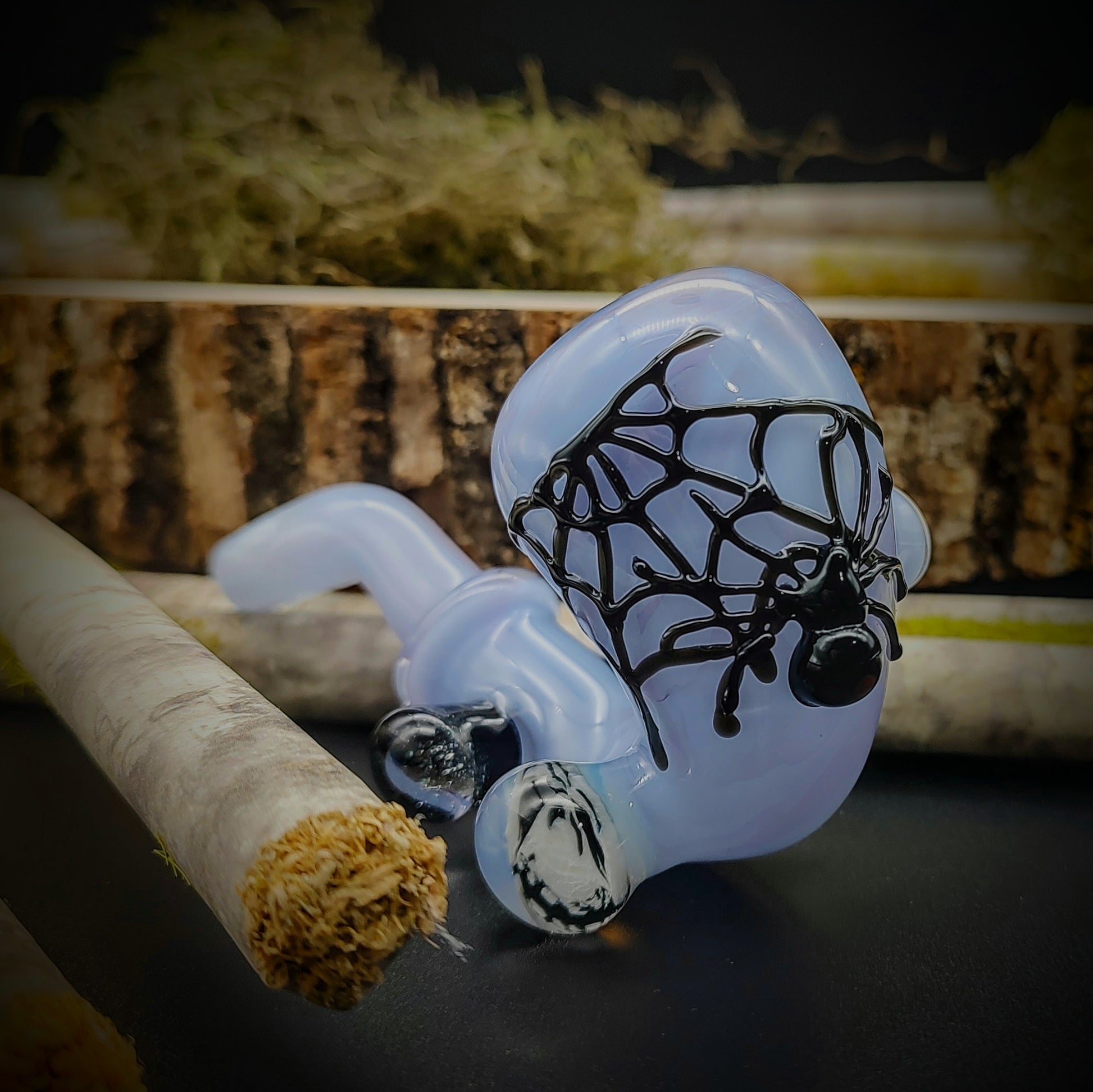 Invoca al detective que llevas dentro y maravíllate ante la sorprendente belleza de la pipa Spider with Web Sherlock. Esta pipa única presenta una araña negra y una telaraña negra a juego, un llamativo tubo azul claro con humo dorado y detalles en ópalo y mili. Su cautivador diseño y sus impresionantes tonos morados te cautivarán.