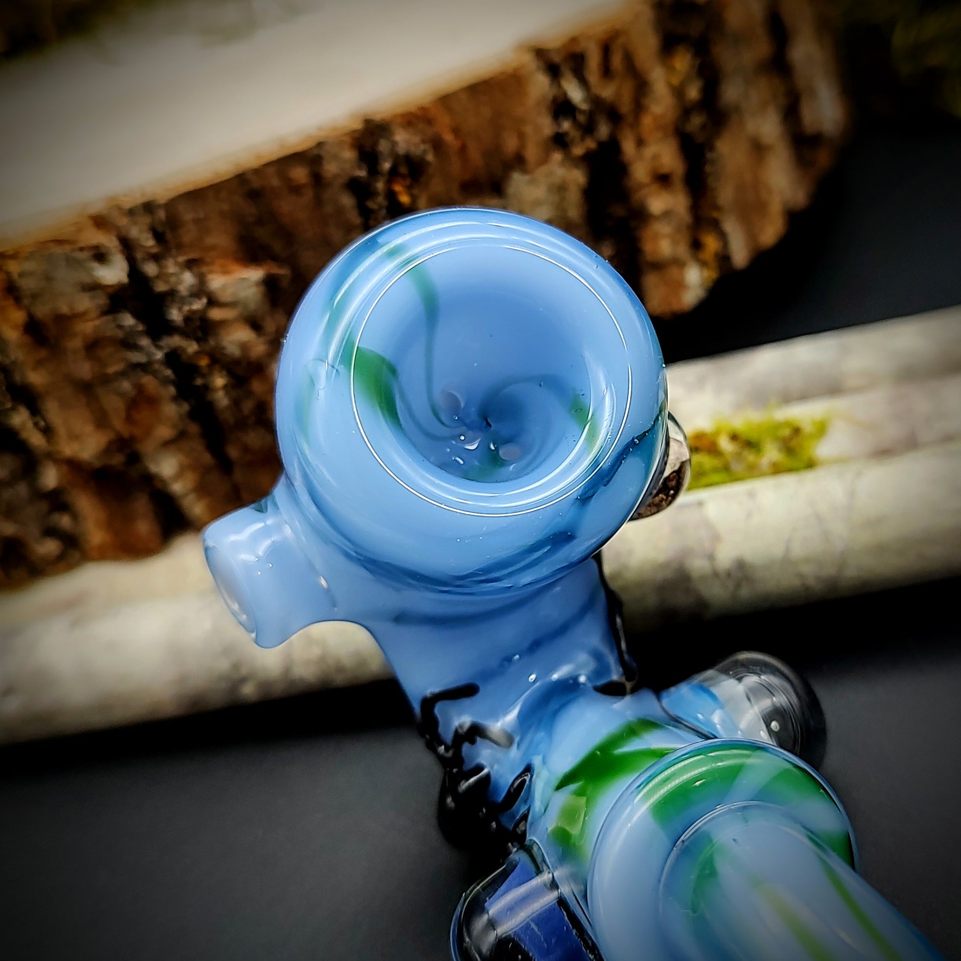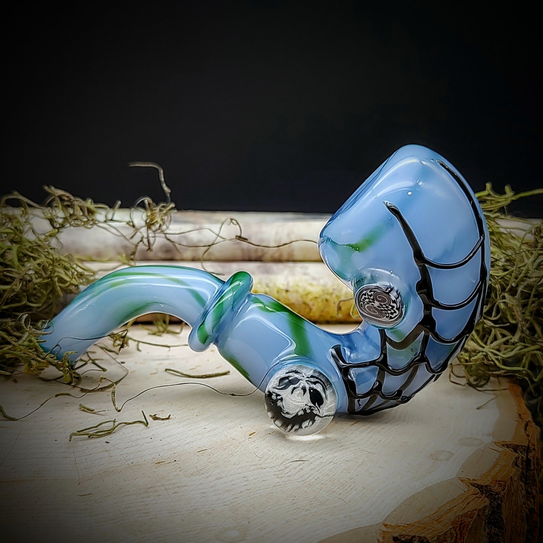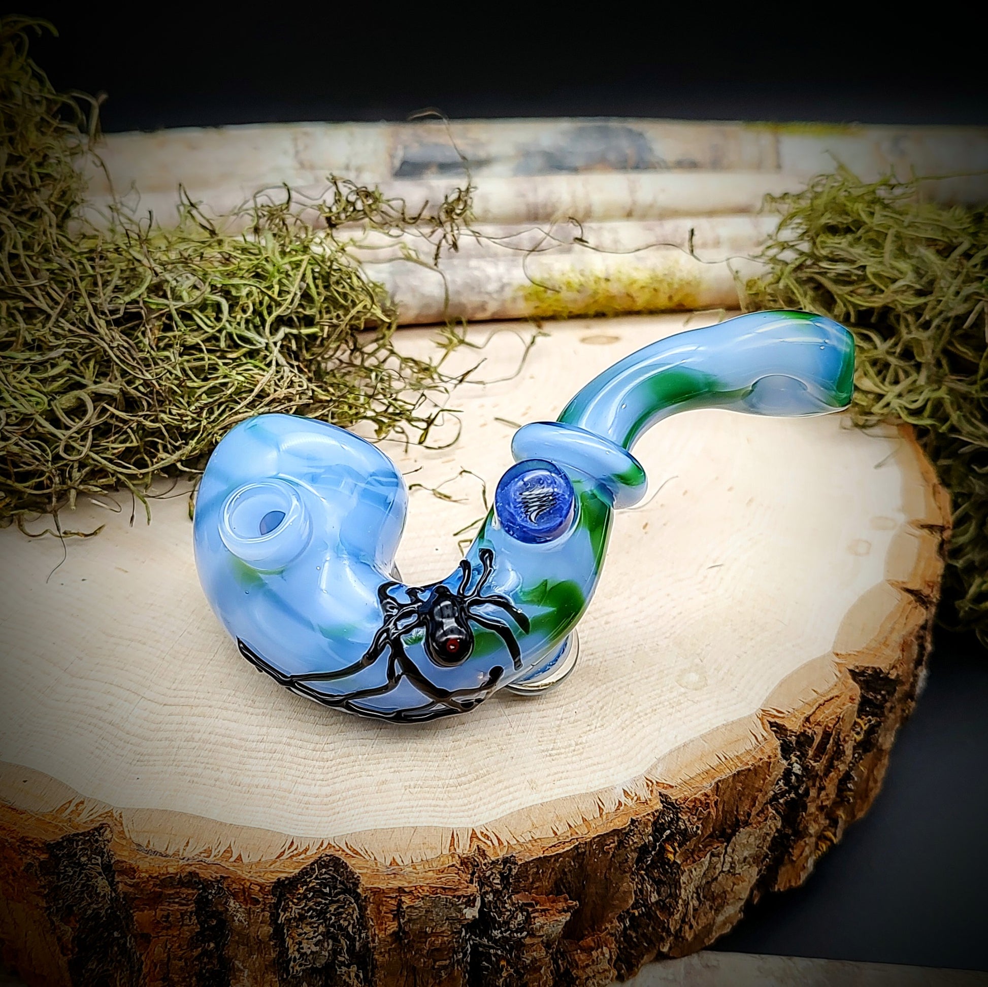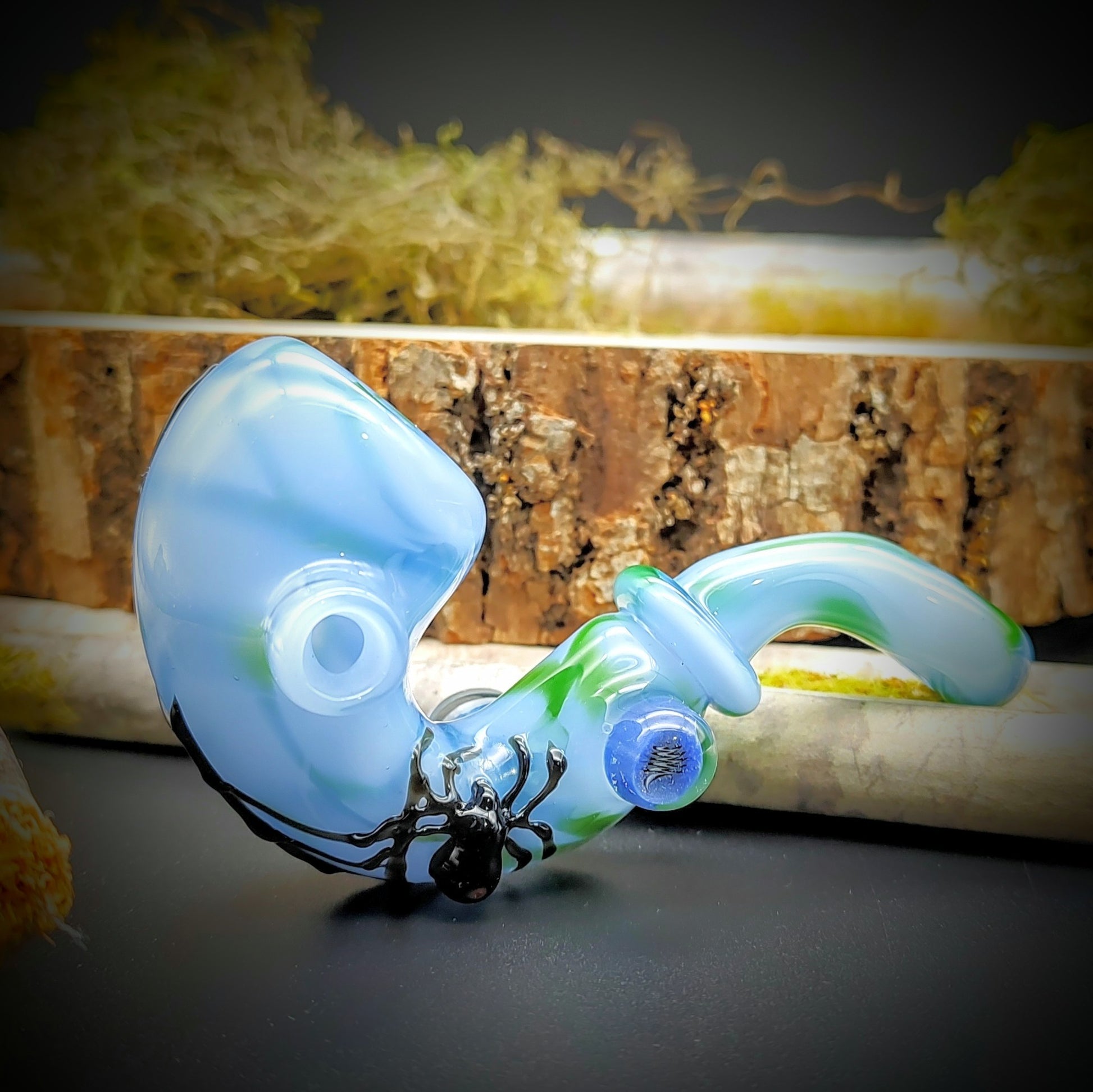 ¡Experimenta la maravilla de la Araña con Web Sherlock! Una impresionante combinación de araña negra y telaraña negra a juego sobre un tubo azul claro con mechones verdes y azules para una estética llamativa. Acentuado con mili y una boquilla tipo donut aplanada para una experiencia de fumar exquisita. Deja que este Sherlock te transporte a otro mundo.