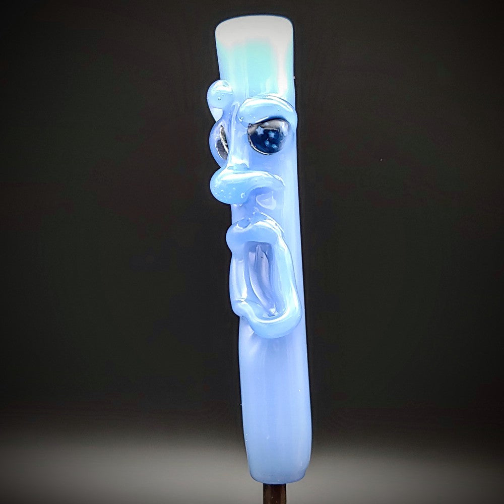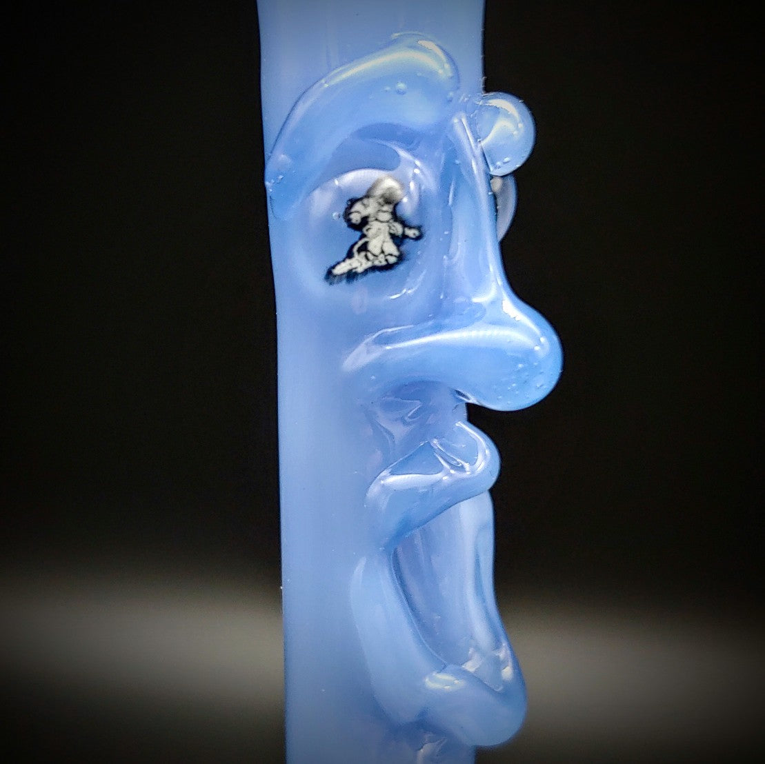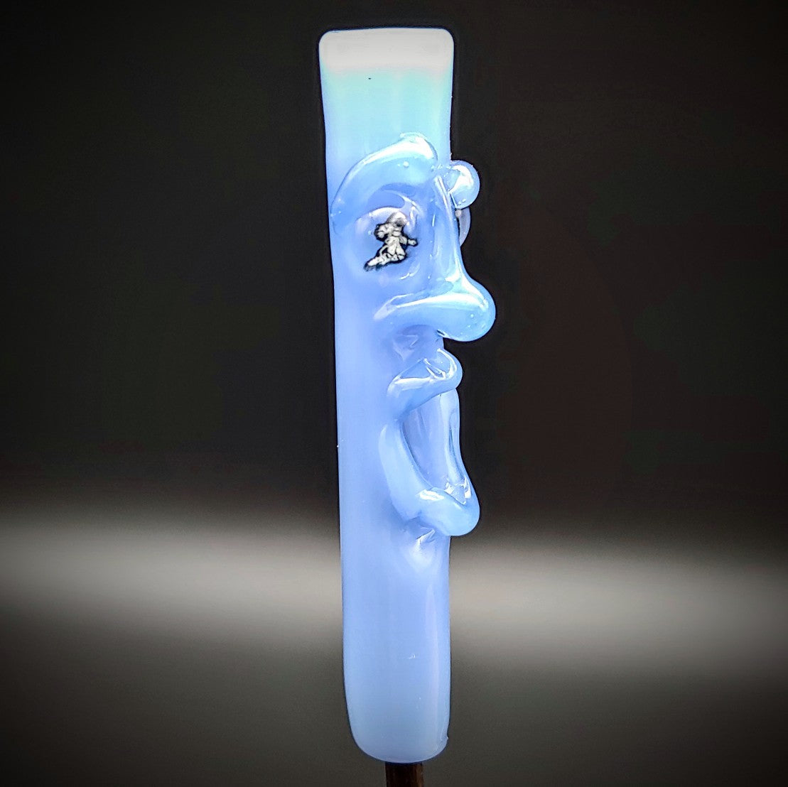 Milky Blue TAD with one astronaut eye and one starry eye. Both eyes have Illuminati (uranium glass) for the stars and glow under black light. Each TAD is unique with its own personality and is sure to be your new best buddy!